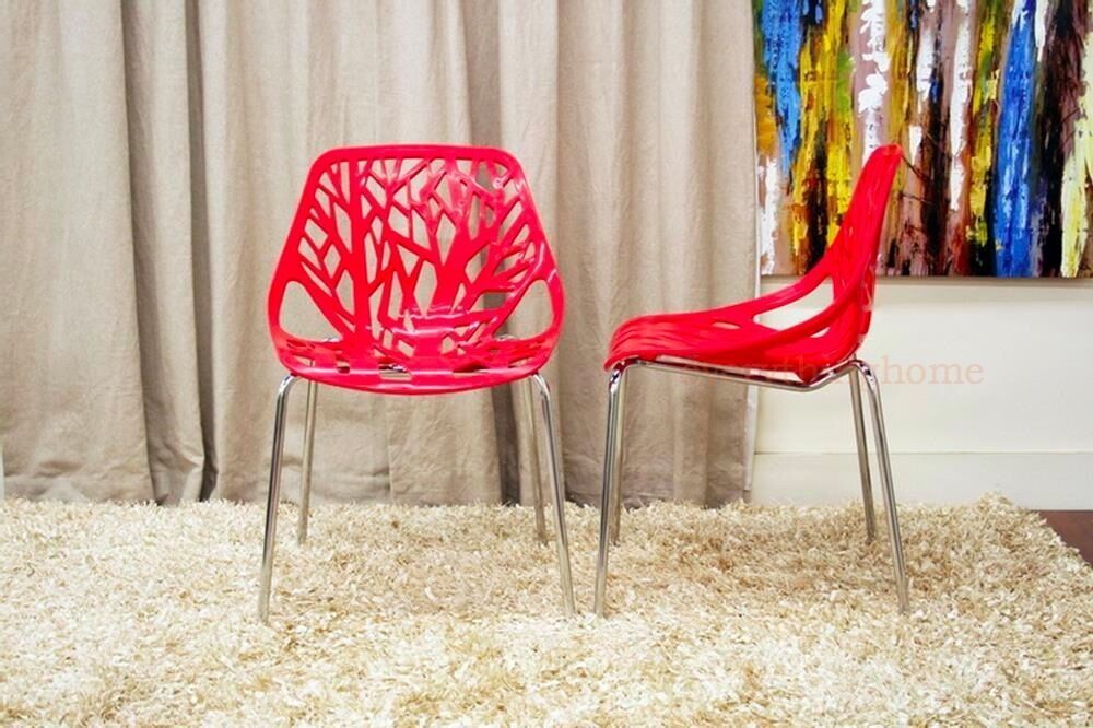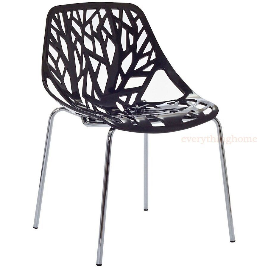 intricate ?Birch? tree cut-out design is ideal around a minimalist dining or bistro table or simply as a standalone chair in an entryway,
