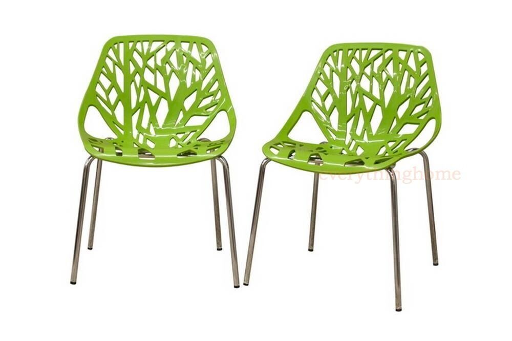 2 Tree Branch Birch Stencil In/Out Birds Nest Dining Chairs -Whi Grn Blu Blk Red