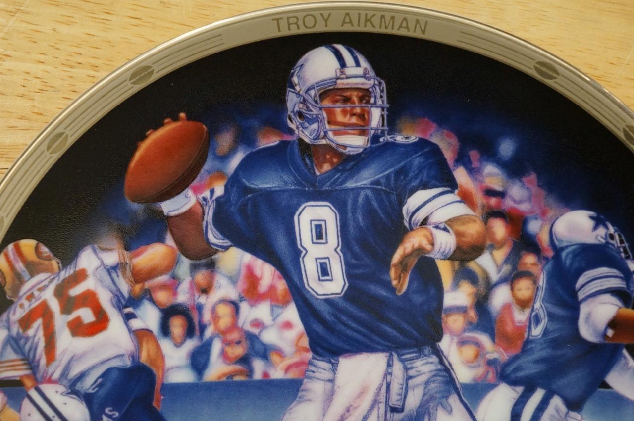 Troy Aikman Football Dallas Cowboys Sports Impressions 8.5" Plate NOS Original Box. COA Present.