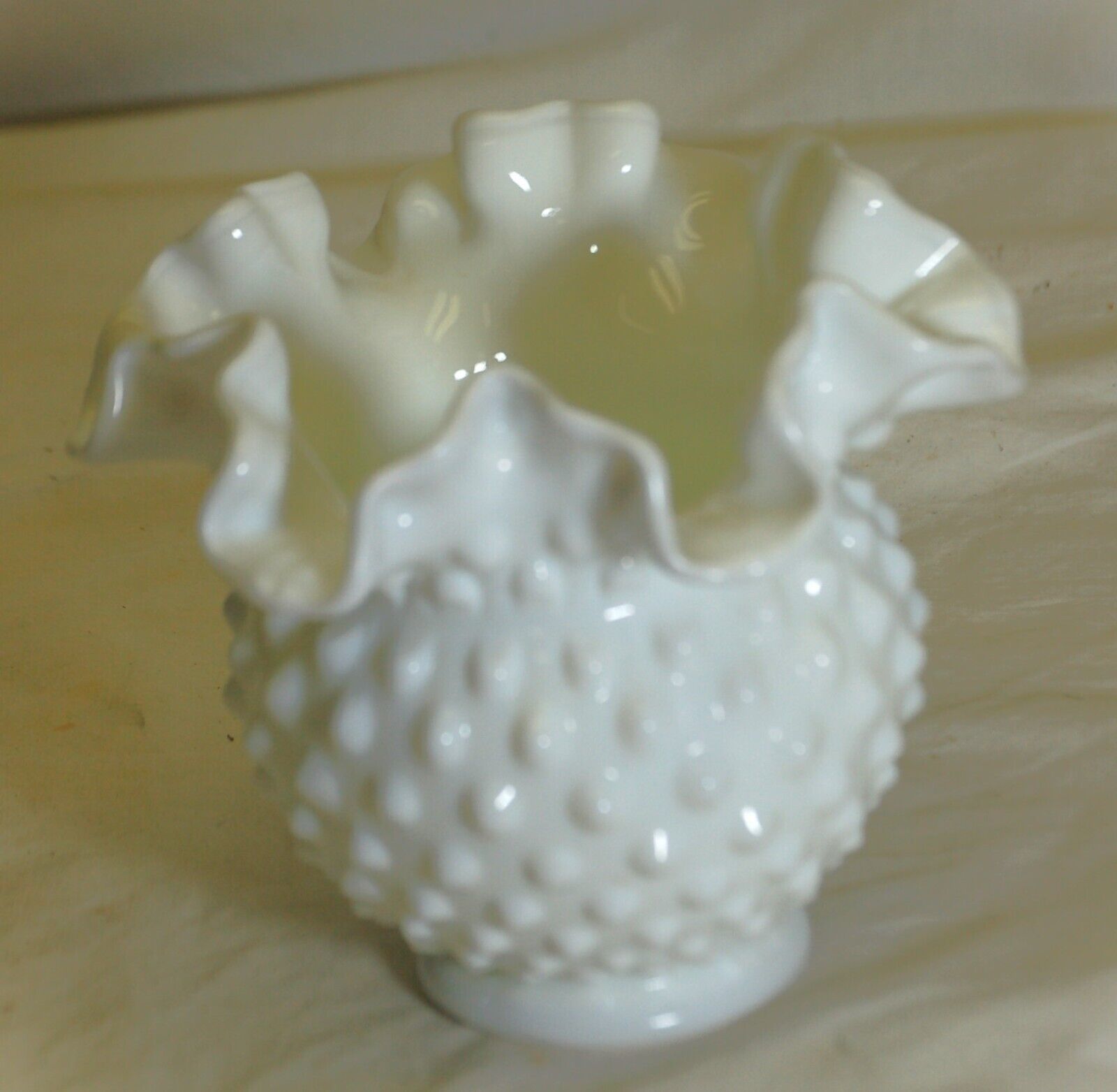 Fenton Hobnail Milk Glass Double Crimp Vase 4-1/4"