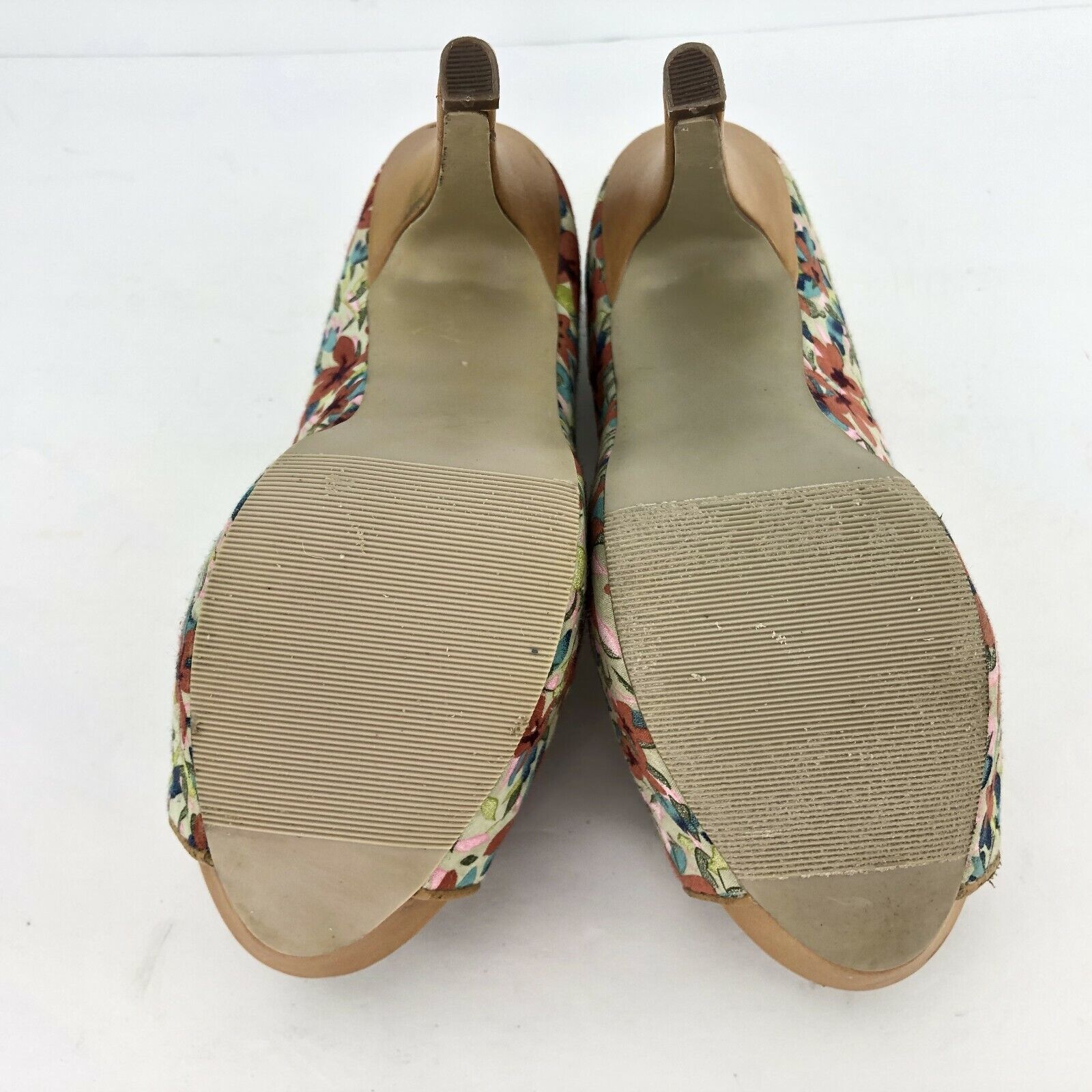Madden Girl Lukkie Size 7 Floral Open Toe Pump Platform Bow Orange Blue Tan