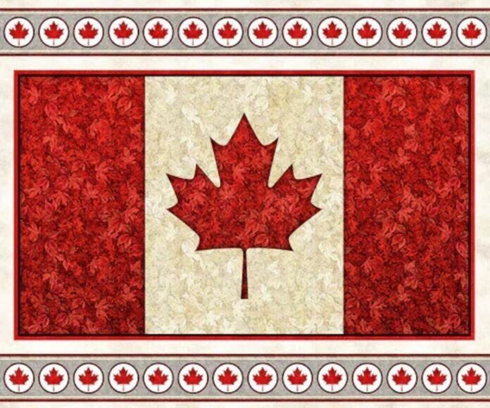 36" X 44" Panel The Great White North Canada Maple Leaf Canadian Flag Red Cotton Fabric Panel (1649-28740-E)Sold by the Panel