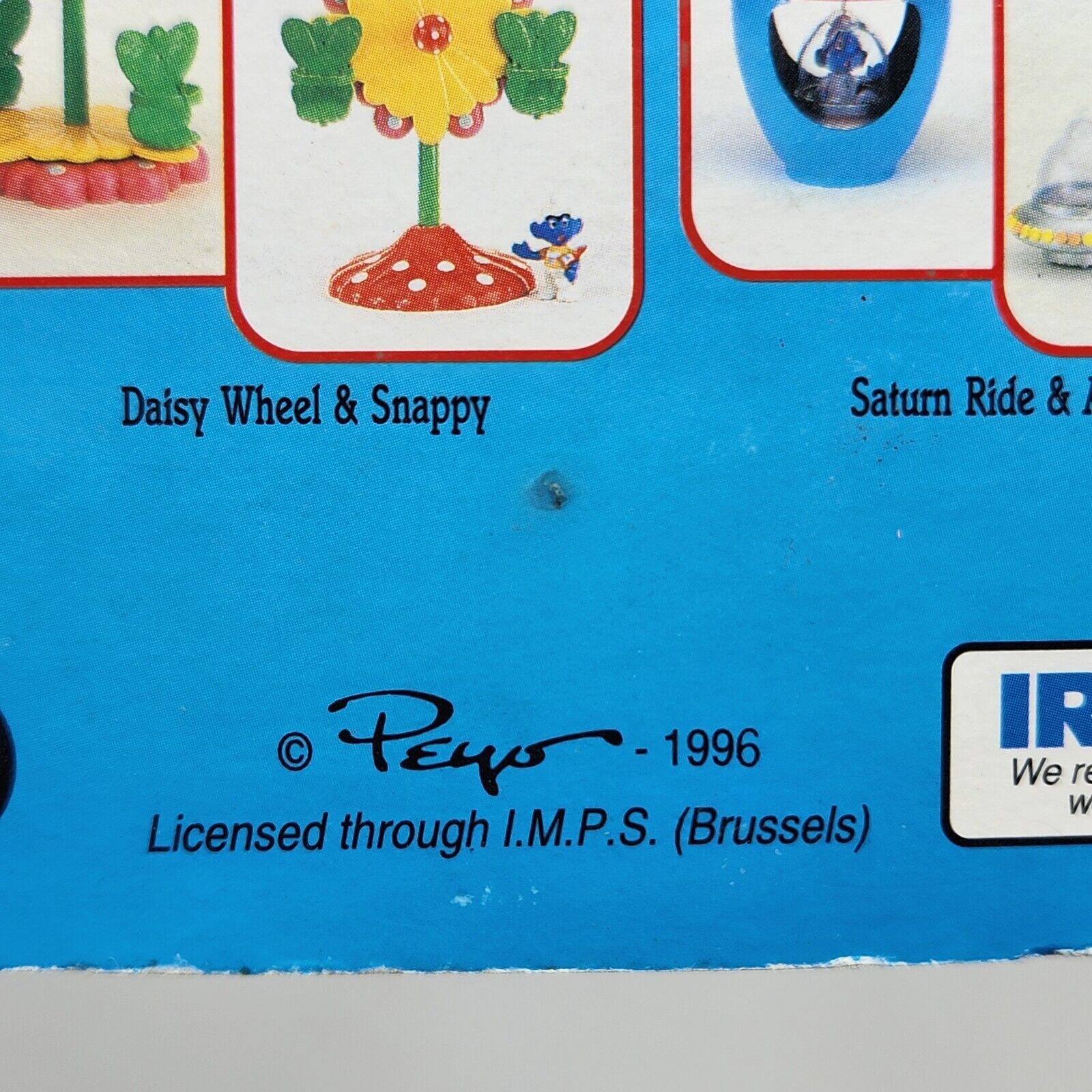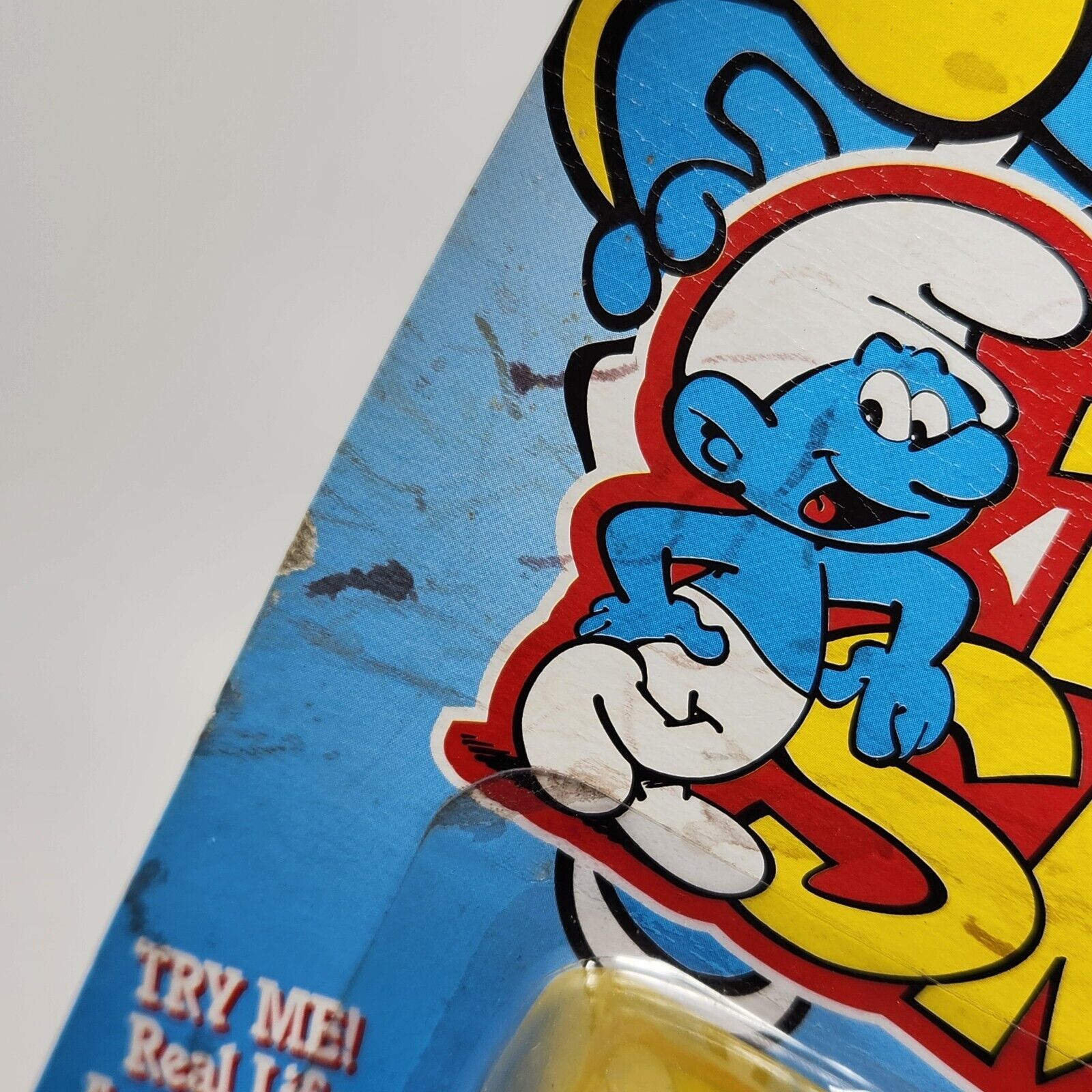 VINTAGE 1996 PEYO SMURFS PAPA SMURF FIGURE W POPCORN IN PACKAGE TOY
