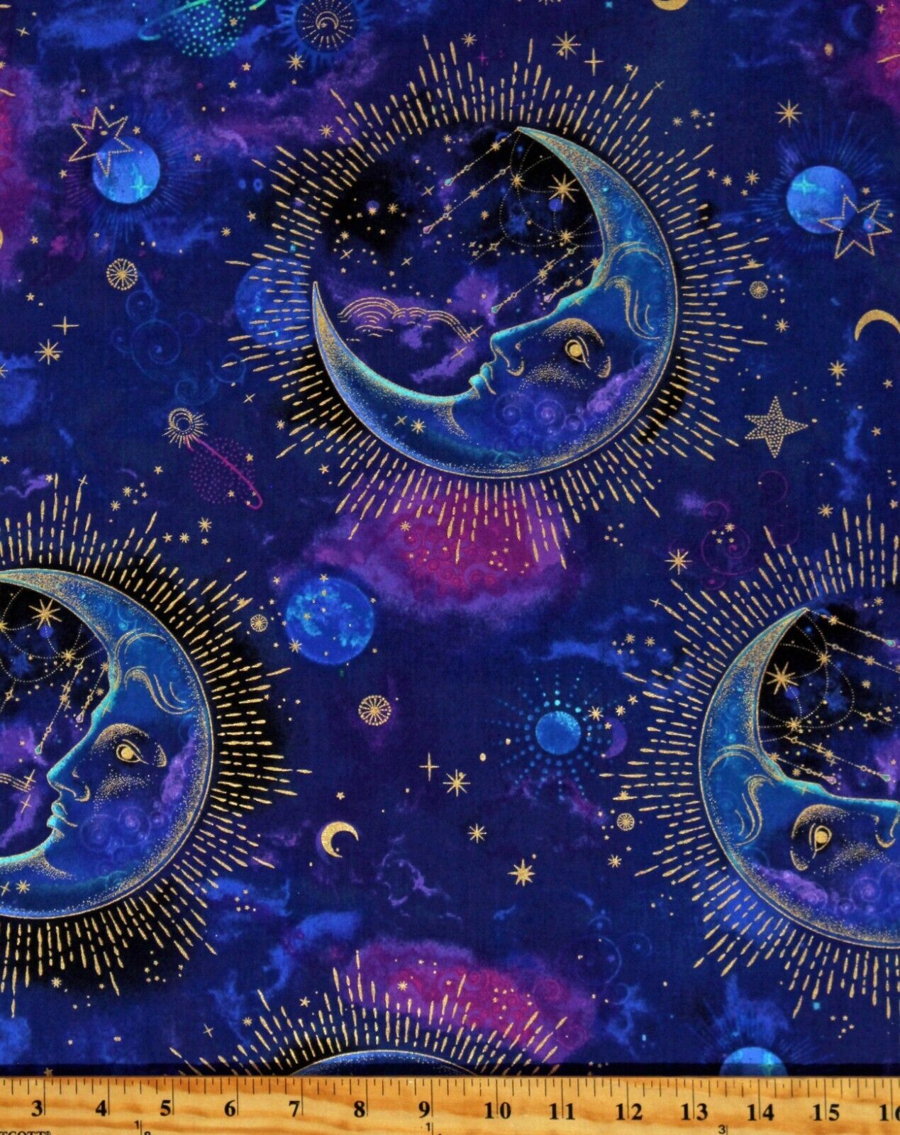Cotton Sky Skies Stars Moons Blue Purple Fabric Print by Yard D776.99
