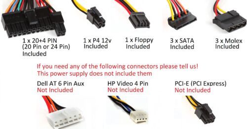 Same size and power/connector locations as original power supply. It fit exactly into the space. Higher wattage with a few more connectors than the original -> I can connect more internal drives. Much larger fan than the original. This means it cools much better and should last longer. I will order from them again when I need a power supply for my other computers.