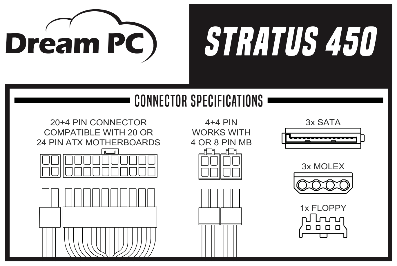 Same size and power/connector locations as original power supply. It fit exactly into the space. Higher wattage with a few more connectors than the original -> I can connect more internal drives. Much larger fan than the original. This means it cools much better and should last longer. I will order from them again when I need a power supply for my other computers.