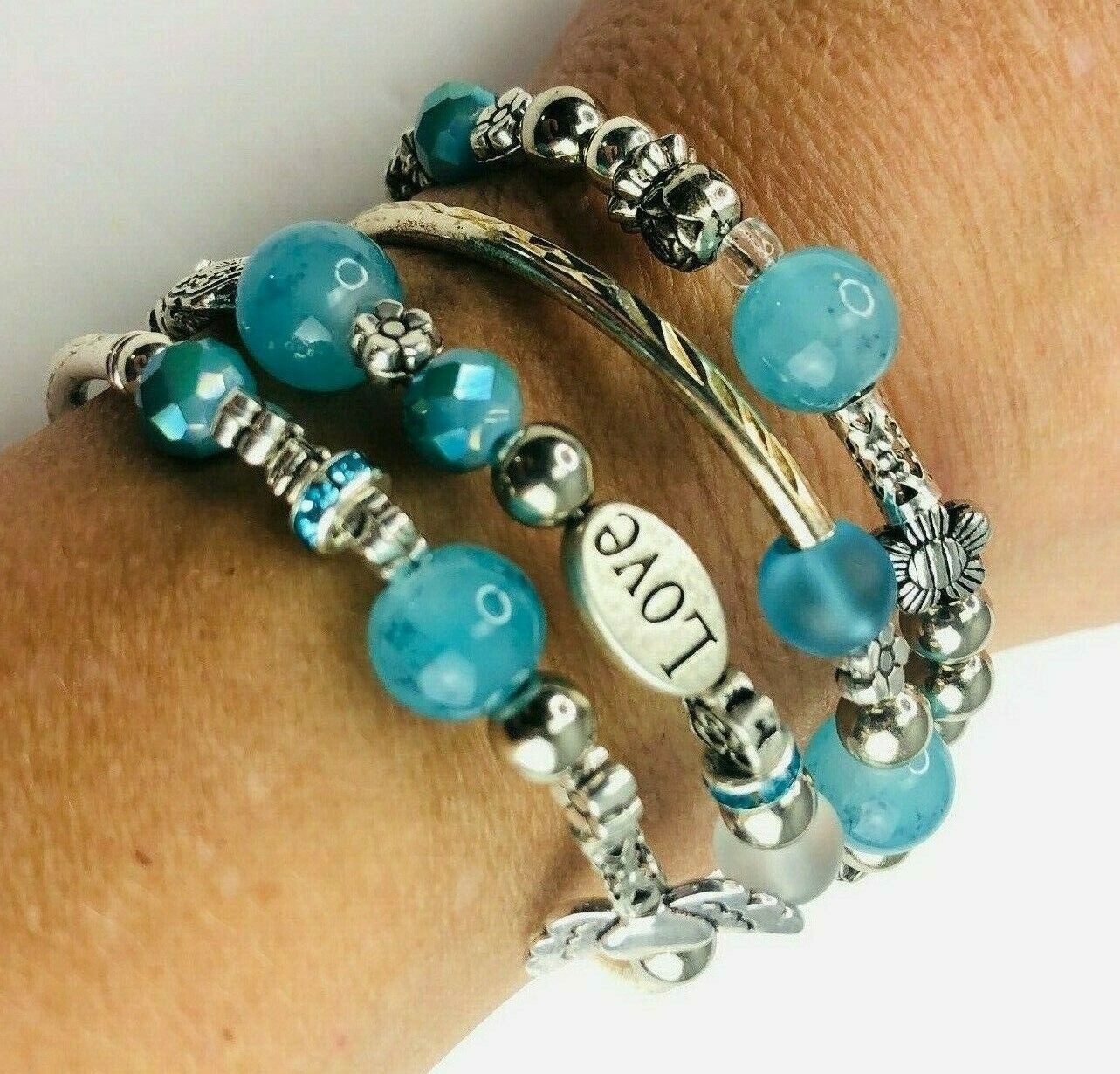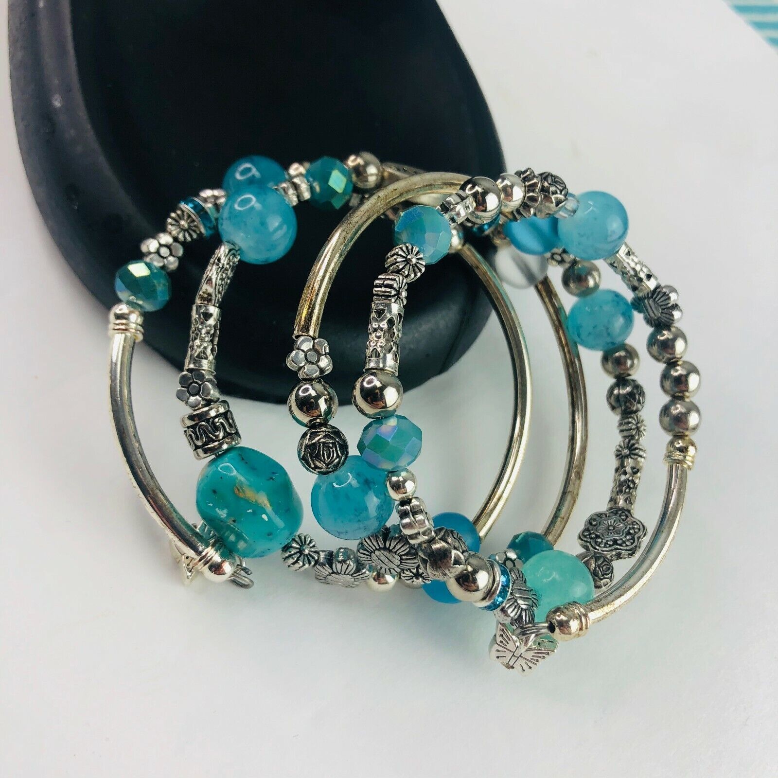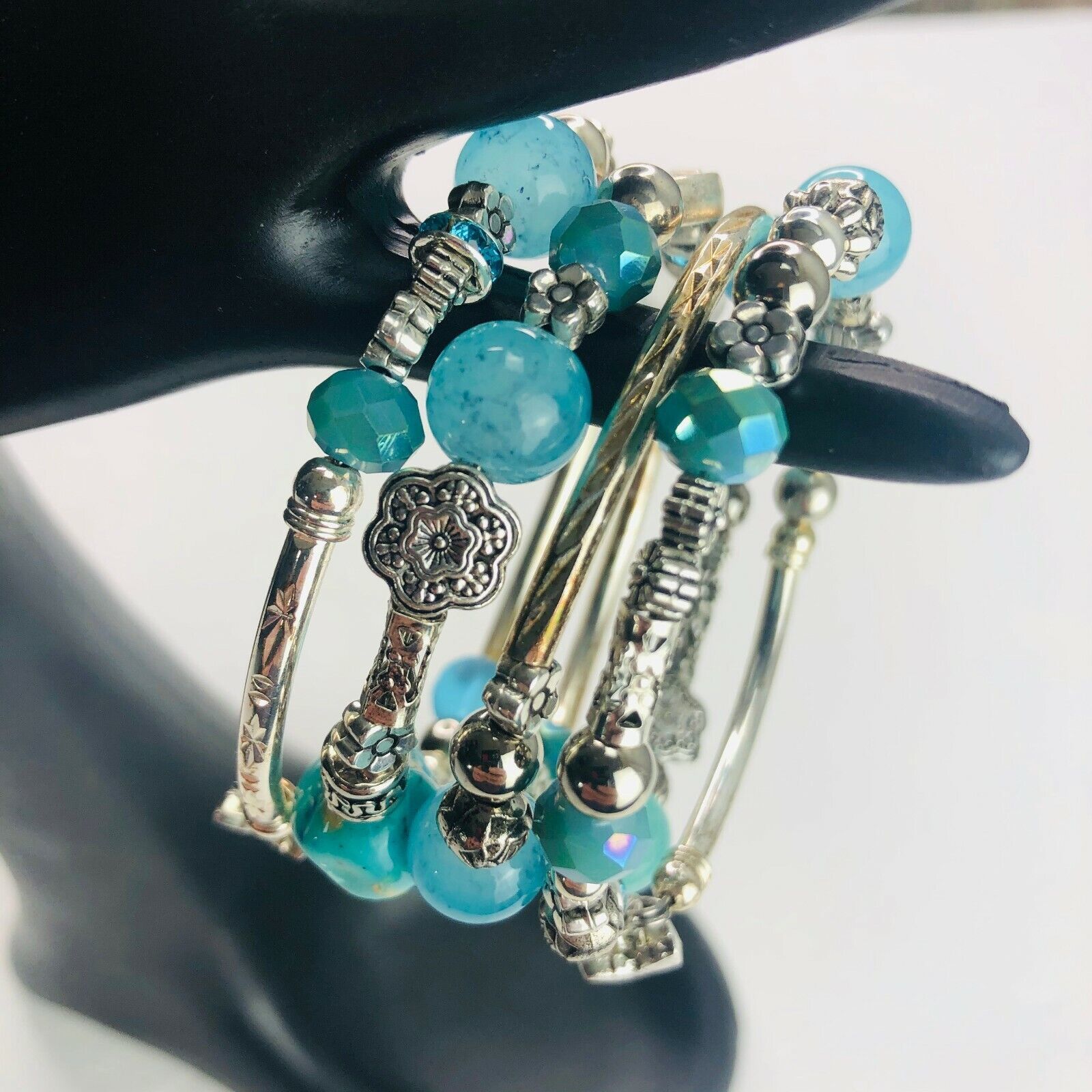 Teal Aqua Turquoise Stack Silver Tone Boho and 50 similar items