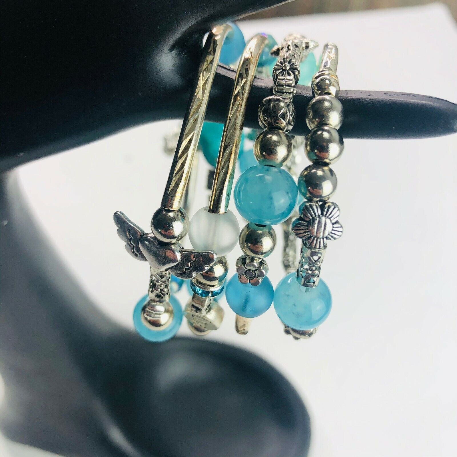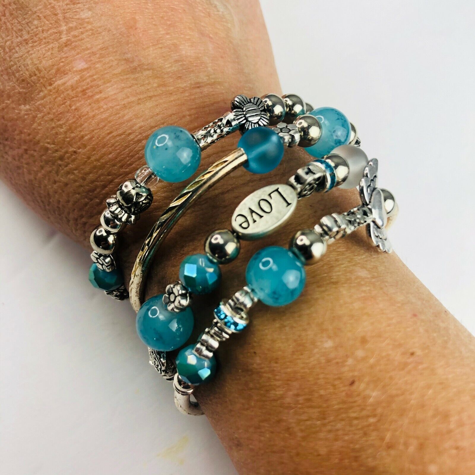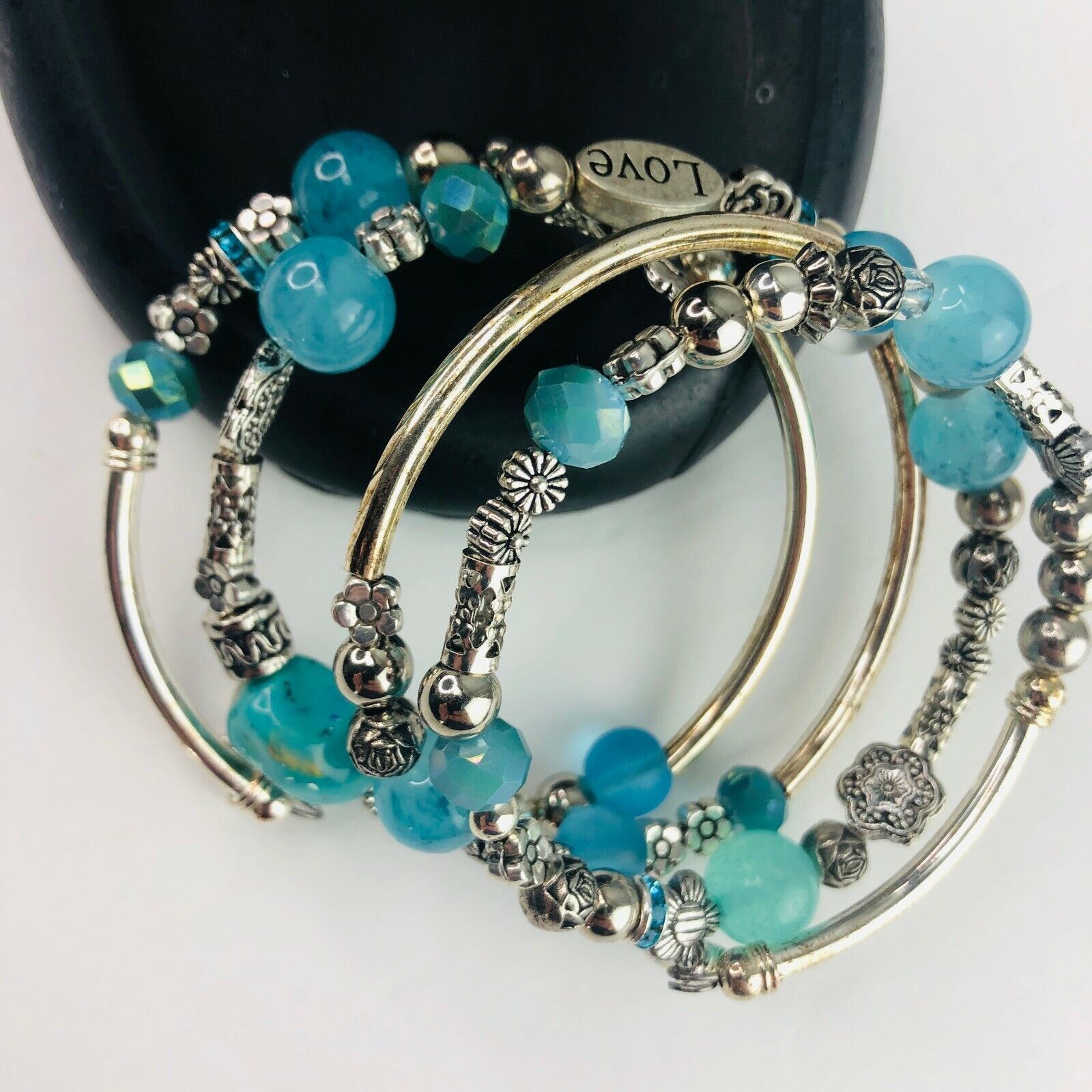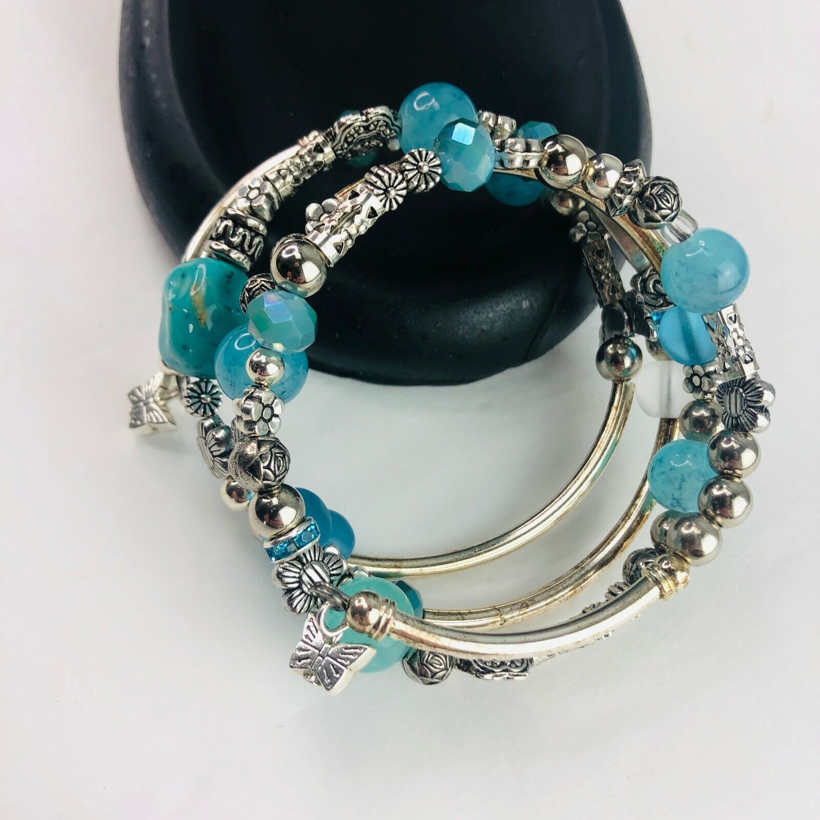 Teal Aqua Turquoise Stack Silver Tone Boho and 50 similar items