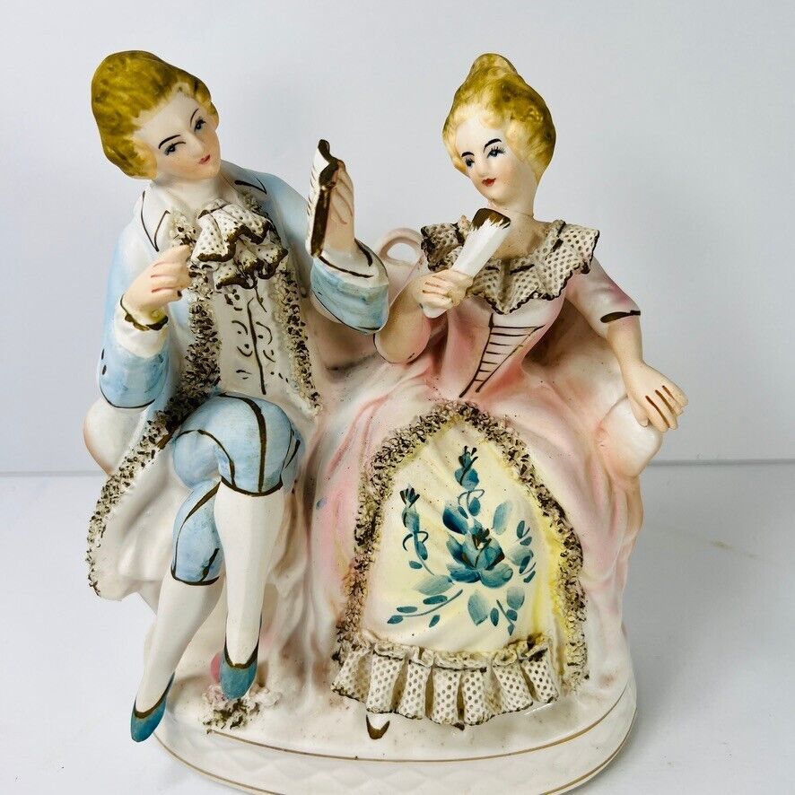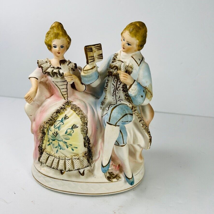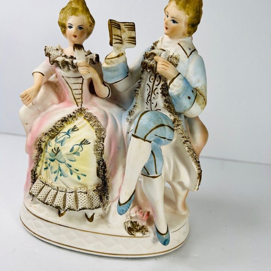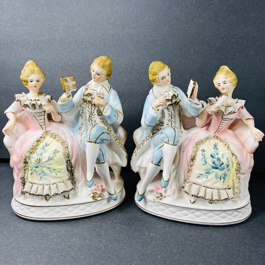 Vintage Fairyland 2Pc Hand Painted Victorian Porcelain Figurines Japan