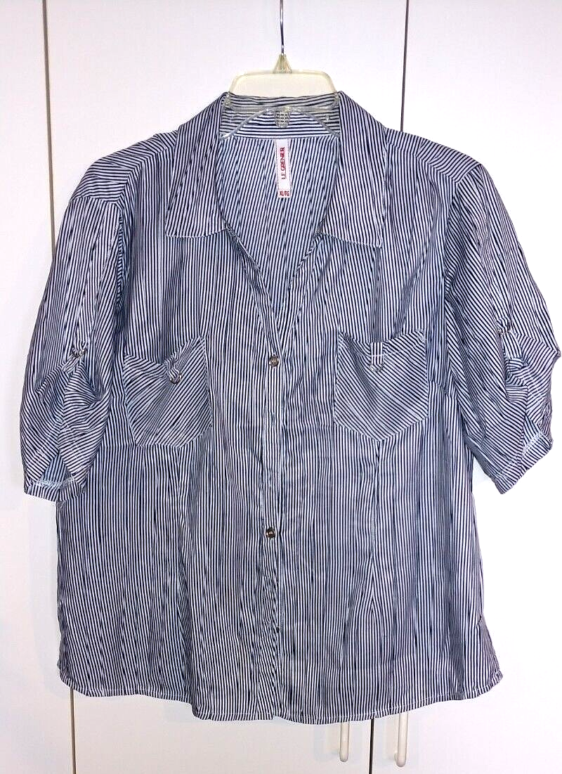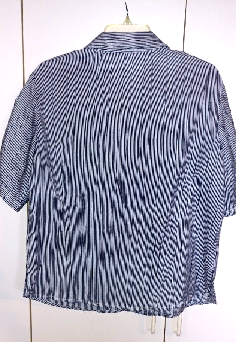 LE GRENIER LADIES SS PINSTRIPE CRINKLE BUTTON TOP W/ROLL-UP SLEEVE-THIN-XL-NICE