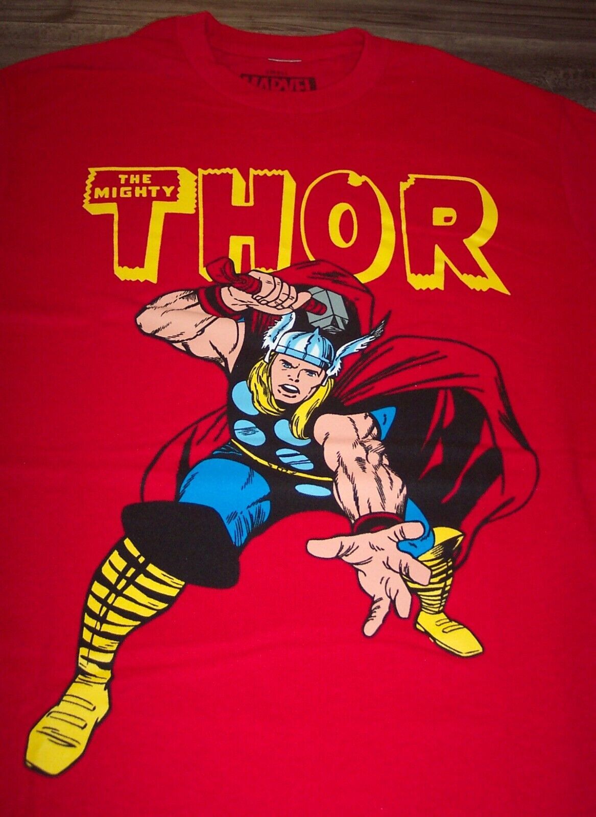 This is a VINTAGE STYLE THE MIGHTY THOR MARVEL COMICS THE AVENGERS T-shirt. It is a size SMALL, and it is NEW. It is 17 1/2 inches from armpit to armpit and 27 inches in length. Officially Licensed. Combine auctions to save on shipping. AD