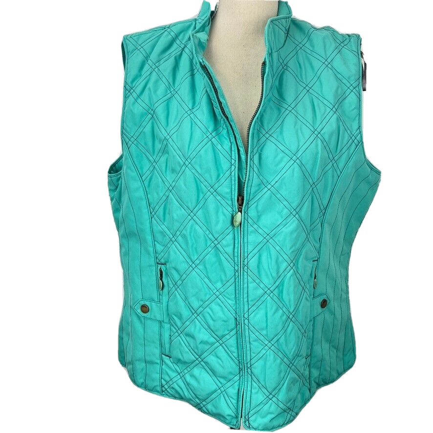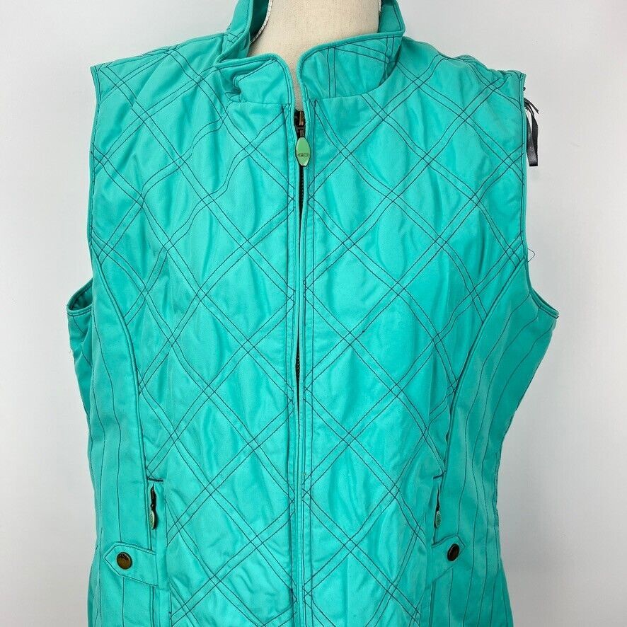 Paco Spirit Diamond Quilted XL Turquoise Vest Full Zip Pockets Jacket Snap