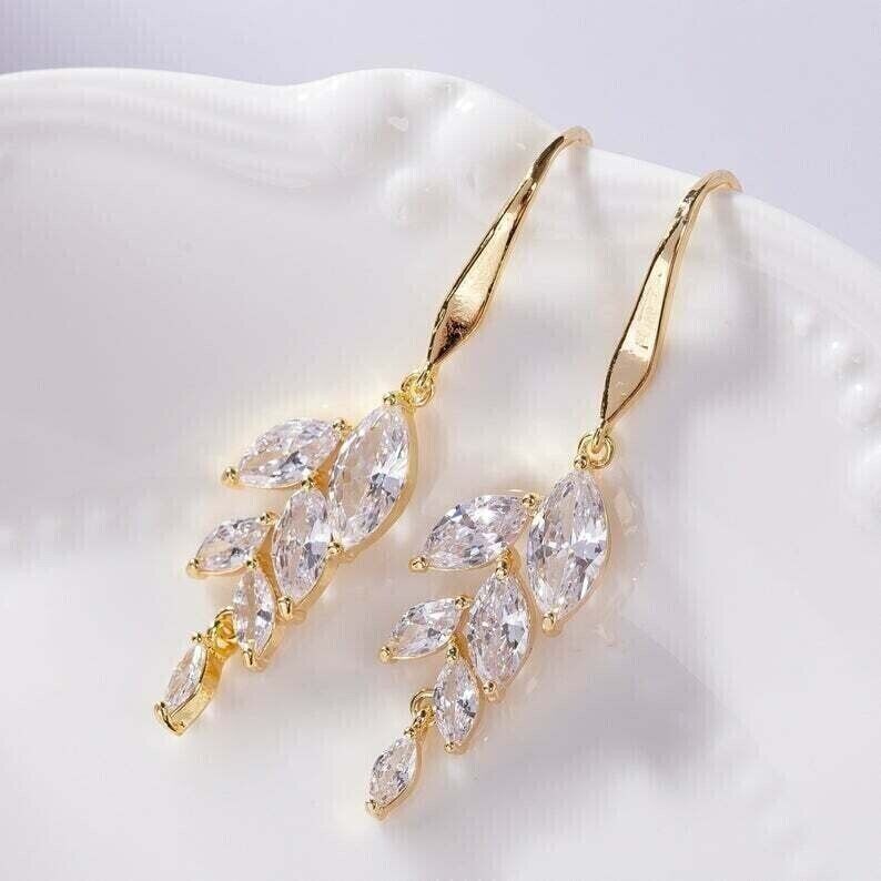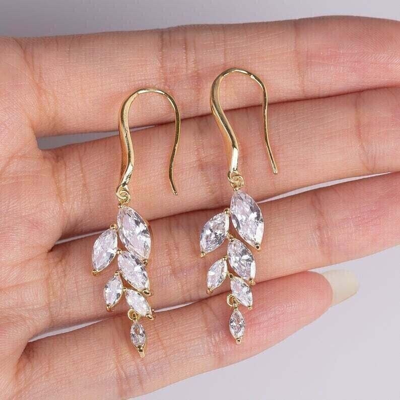 2Ct Marquise Cut Lab-Created Diamond Drop Dangle Earrings 14k Yellow Gold Plated
