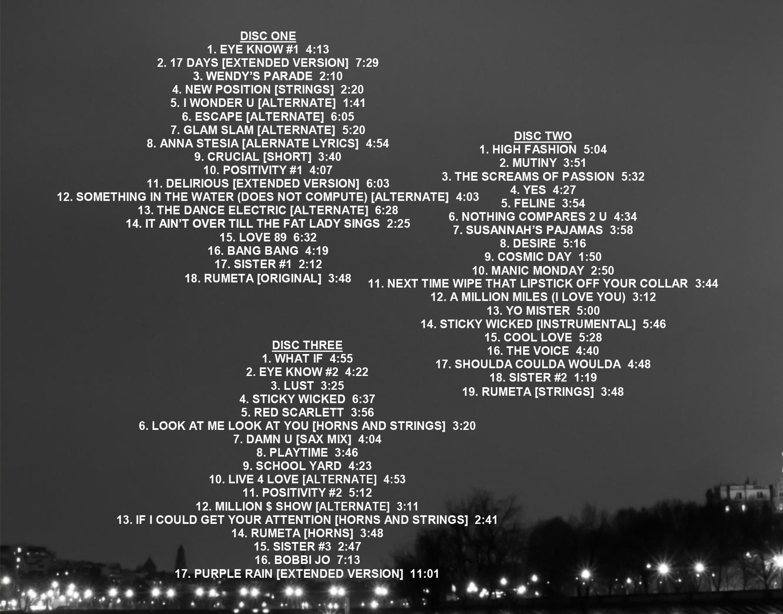 Beautiful 3-CD set offers the full 1985 album that Prince wrote and recorded for The Family, but with Prince on lead vocals! Also included are over two hours worth of prime 1980s-era outtakes (including the full, unedited version of Purple Rain) in fantastic sound quality. This fan-made set has it all! Perfect for the Prince-lover in your life!