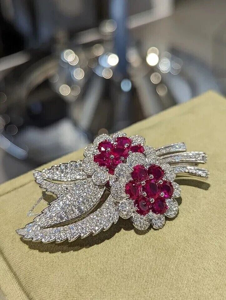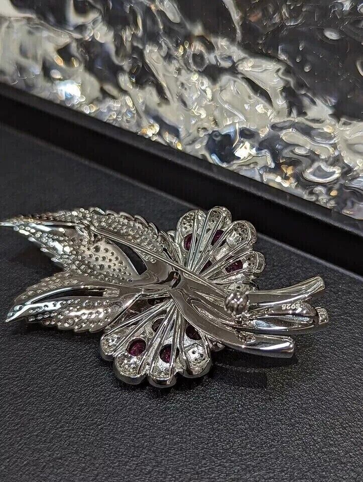 2.50Ct Round Cut Lab-Created Ruby Flower Brooch Pin 14k White Gold Plated