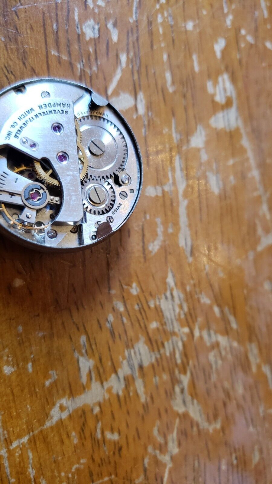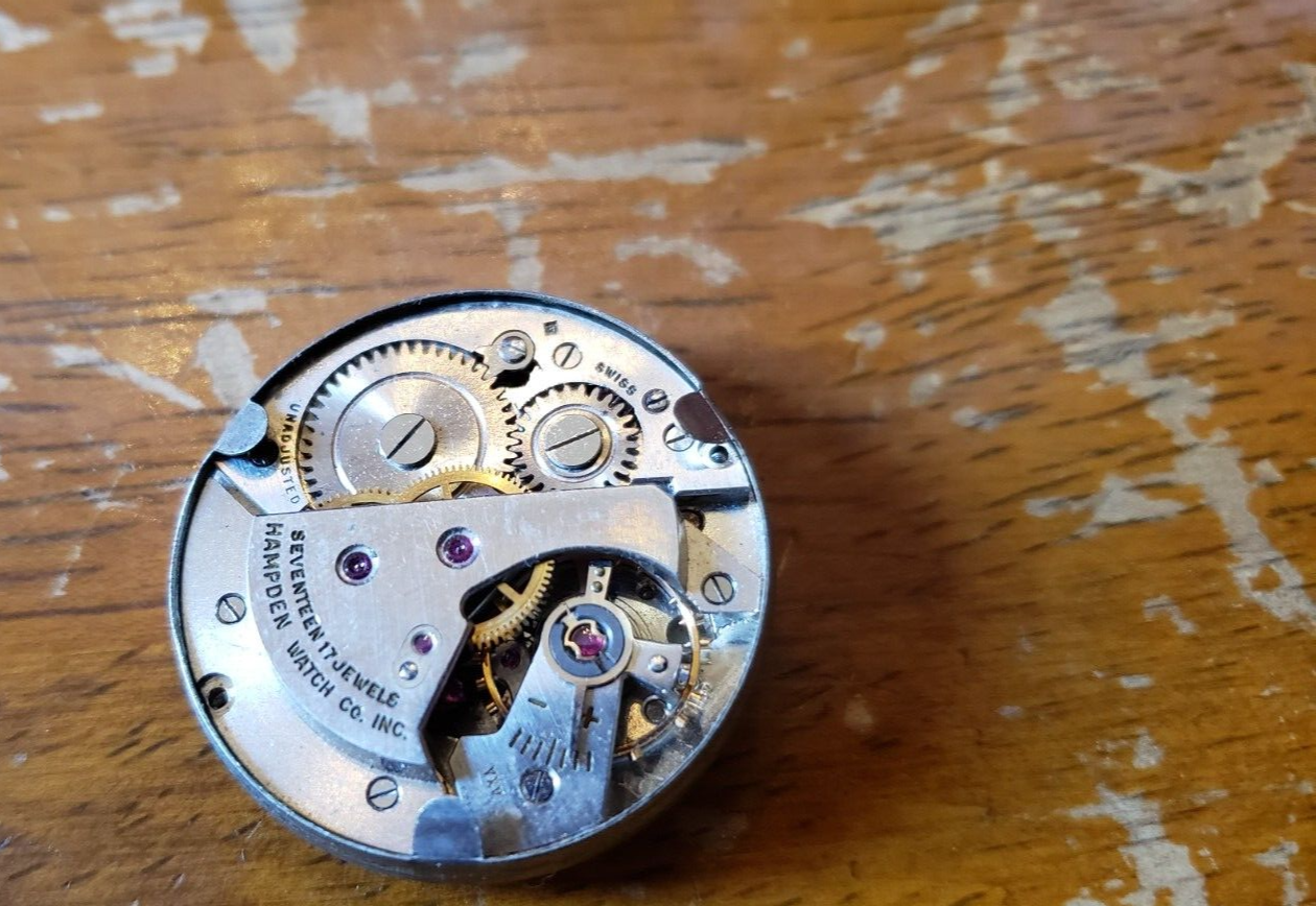 RARE Vintage VTG 1940's 50's Hampden Wrist Watch Movement Dial 17J Shock Protect NOTE - this is a rare vintage watch Part movement here - this is for parts/repair I do not know the exact model this goes to, if you know something let me know. This is always perfect for arts crafts applications this is a piece of history. If you are into old watches this is a nice show piece. If you fix old watches you are in luck. I am not an expert on watches. I bought a big lot of old, back-room, watch parts from a family watch-repair business that went to auction. They had been in business for 100 years. PLEASE - check out my other vintage watch parts we will be listing more over the next number of months. I will give you a deal if you want multiple orders!! FREE USA SHIP