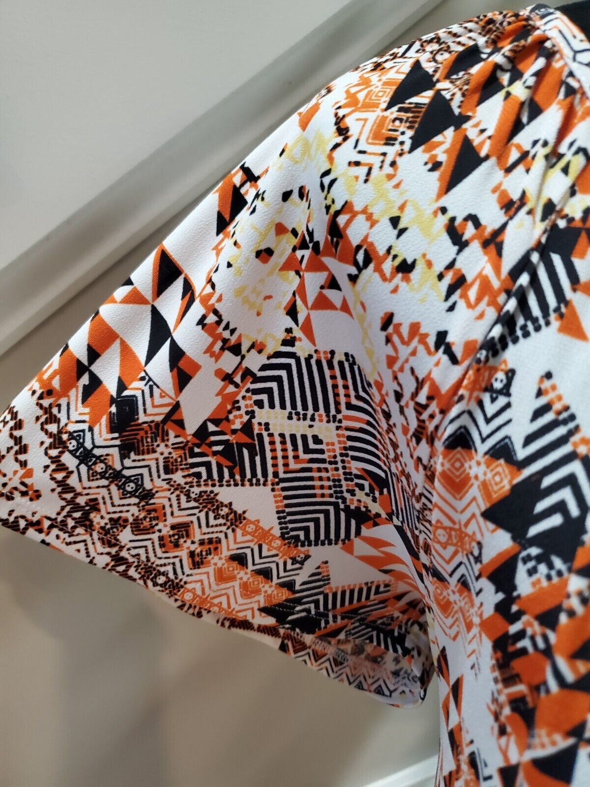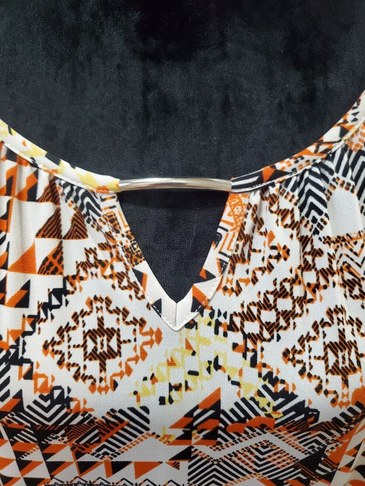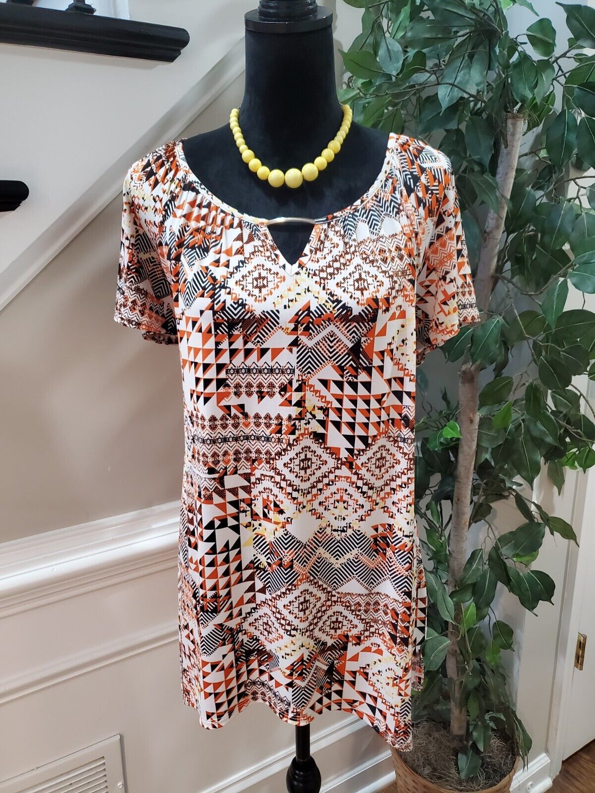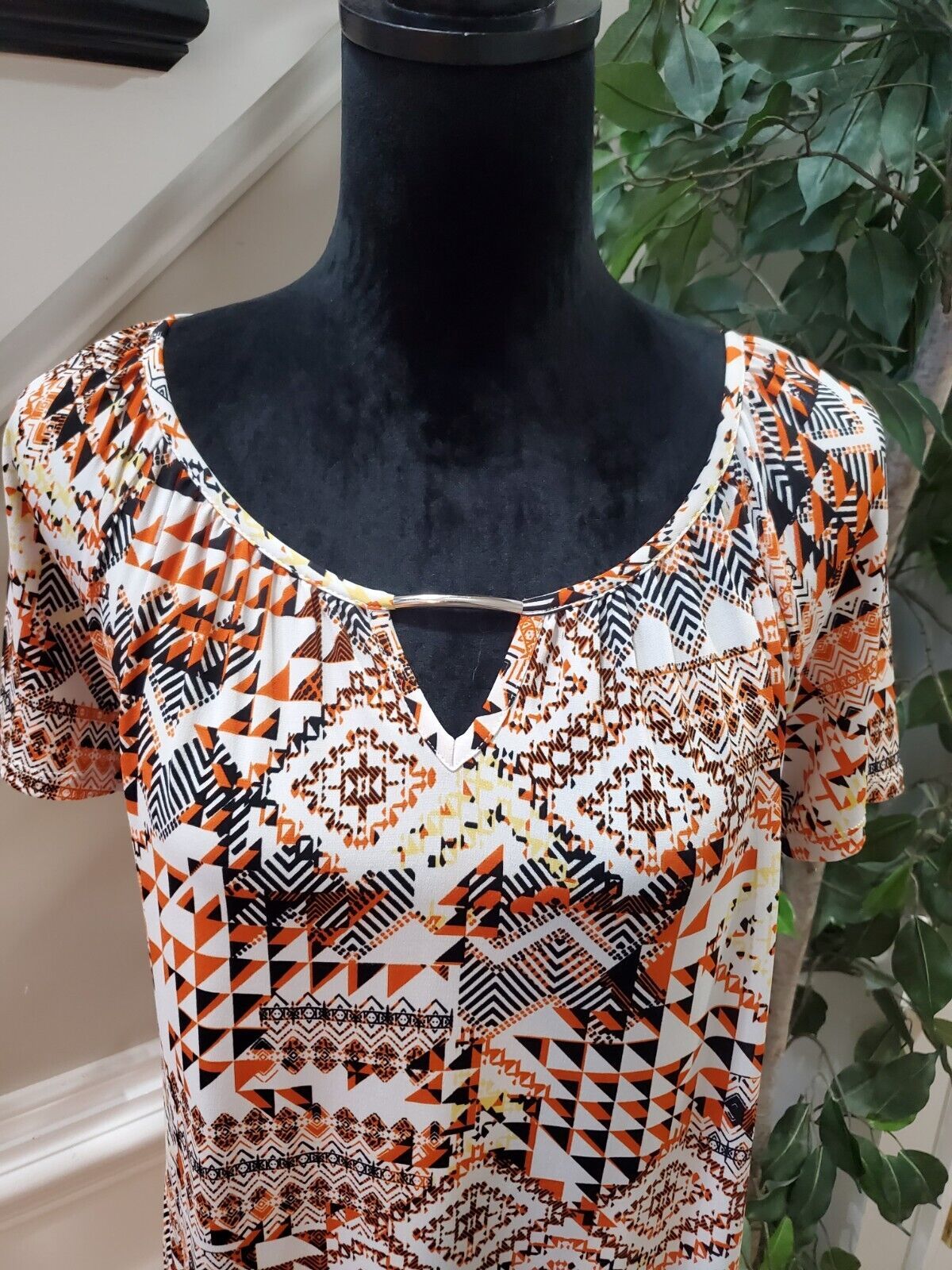 Cato Women's Multi GeoPrint Polyester Round Neck Short Sleeve Top Blouse 14/16