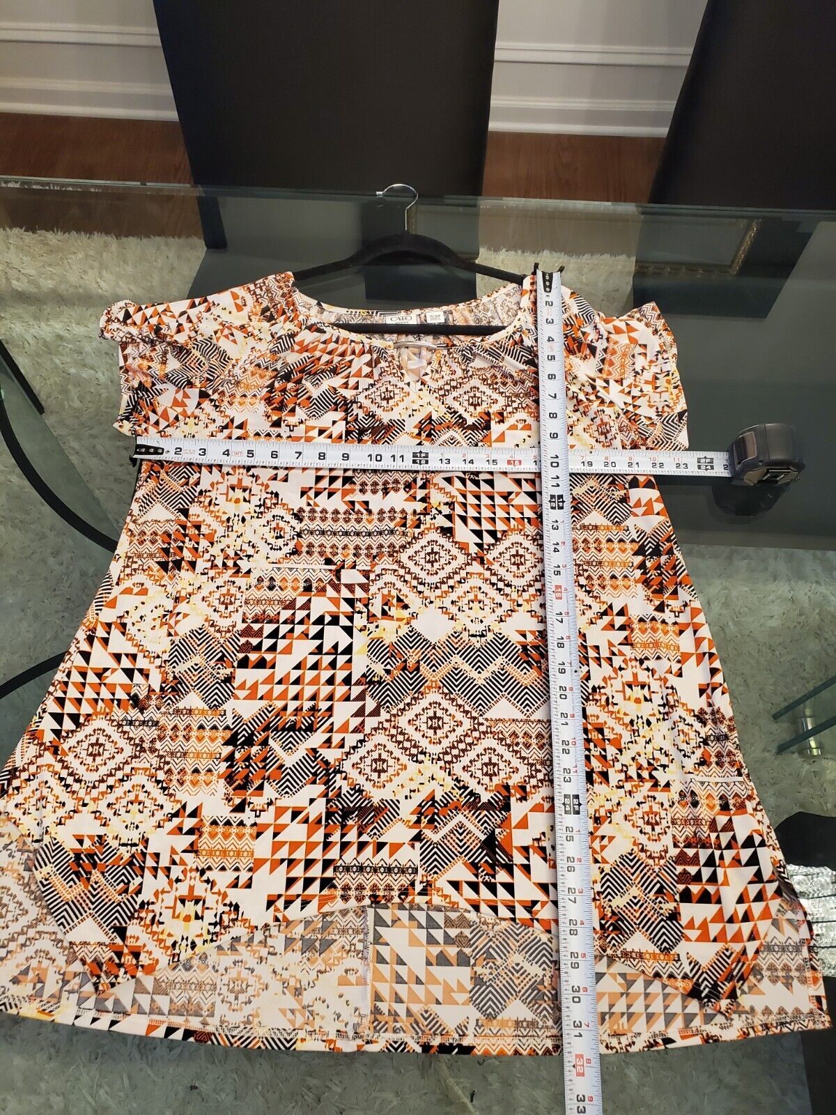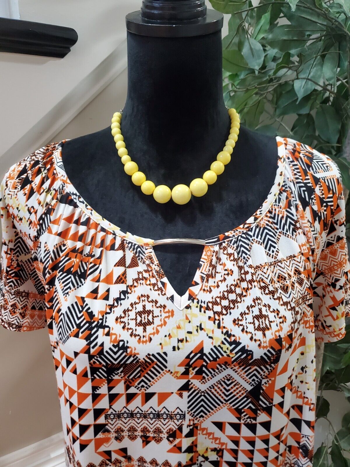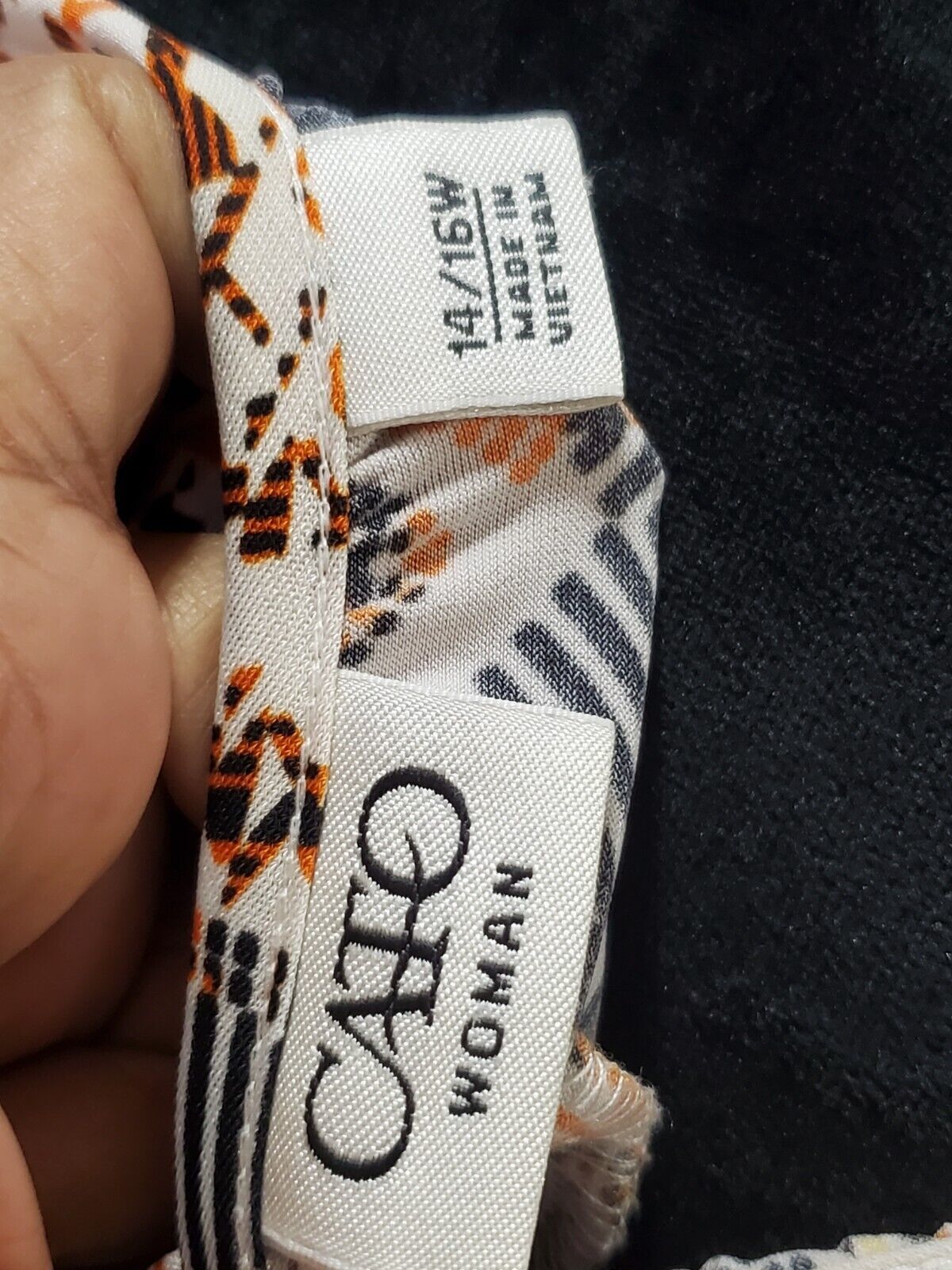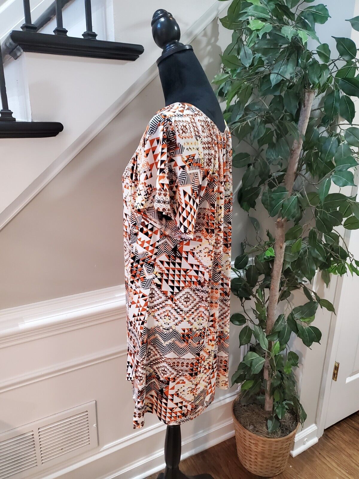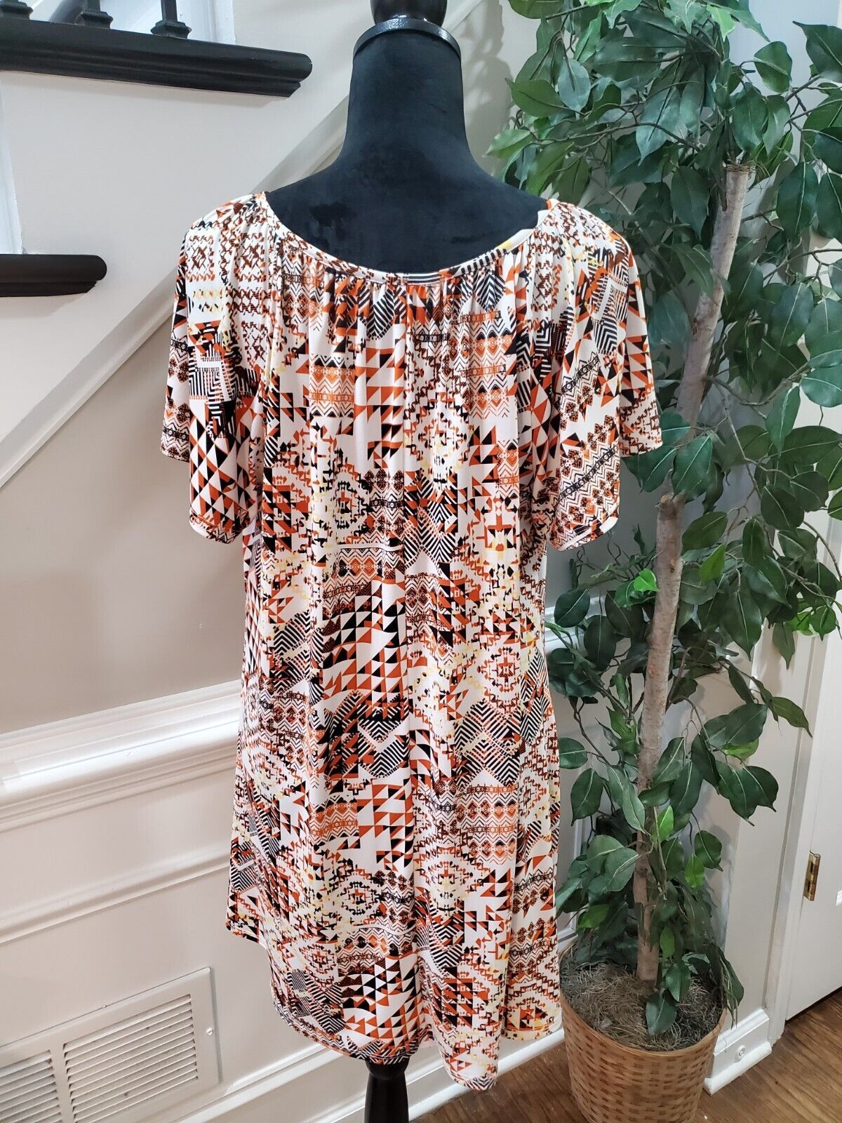 Cato Women's Multi GeoPrint Polyester Round Neck Short Sleeve Top Blouse 14/16