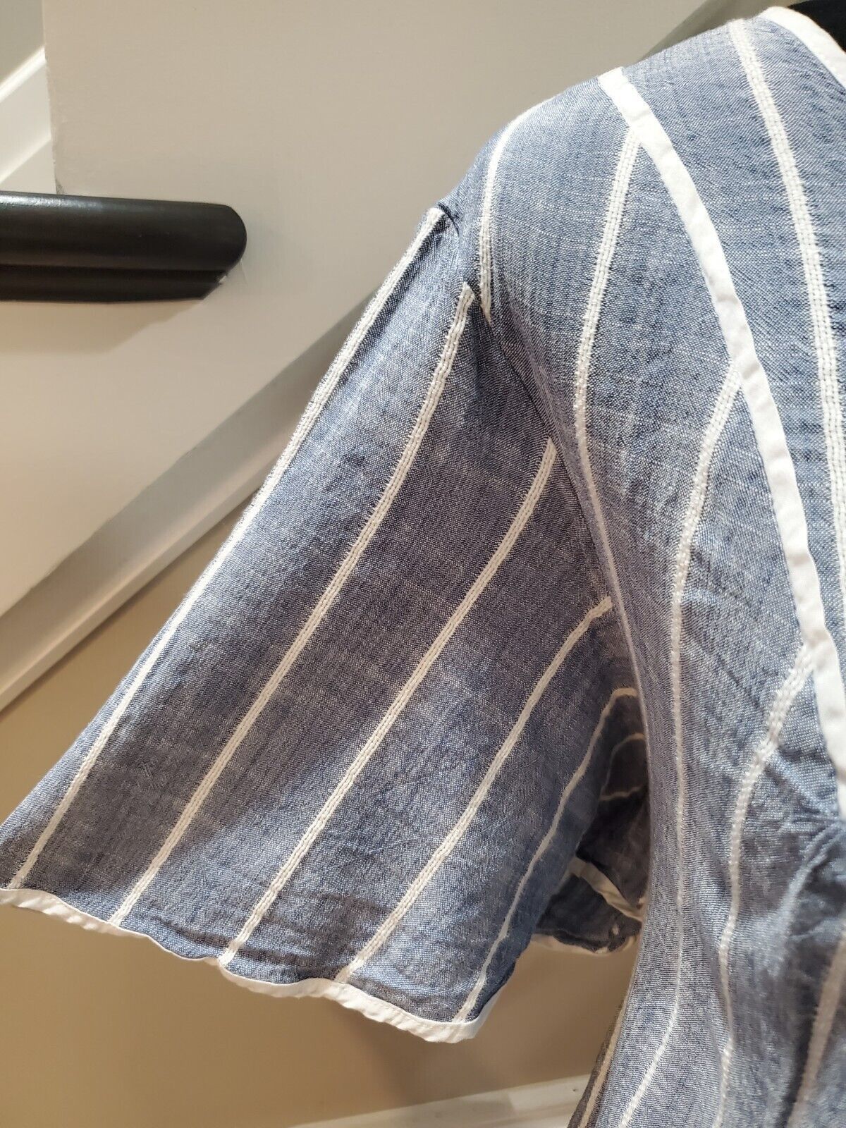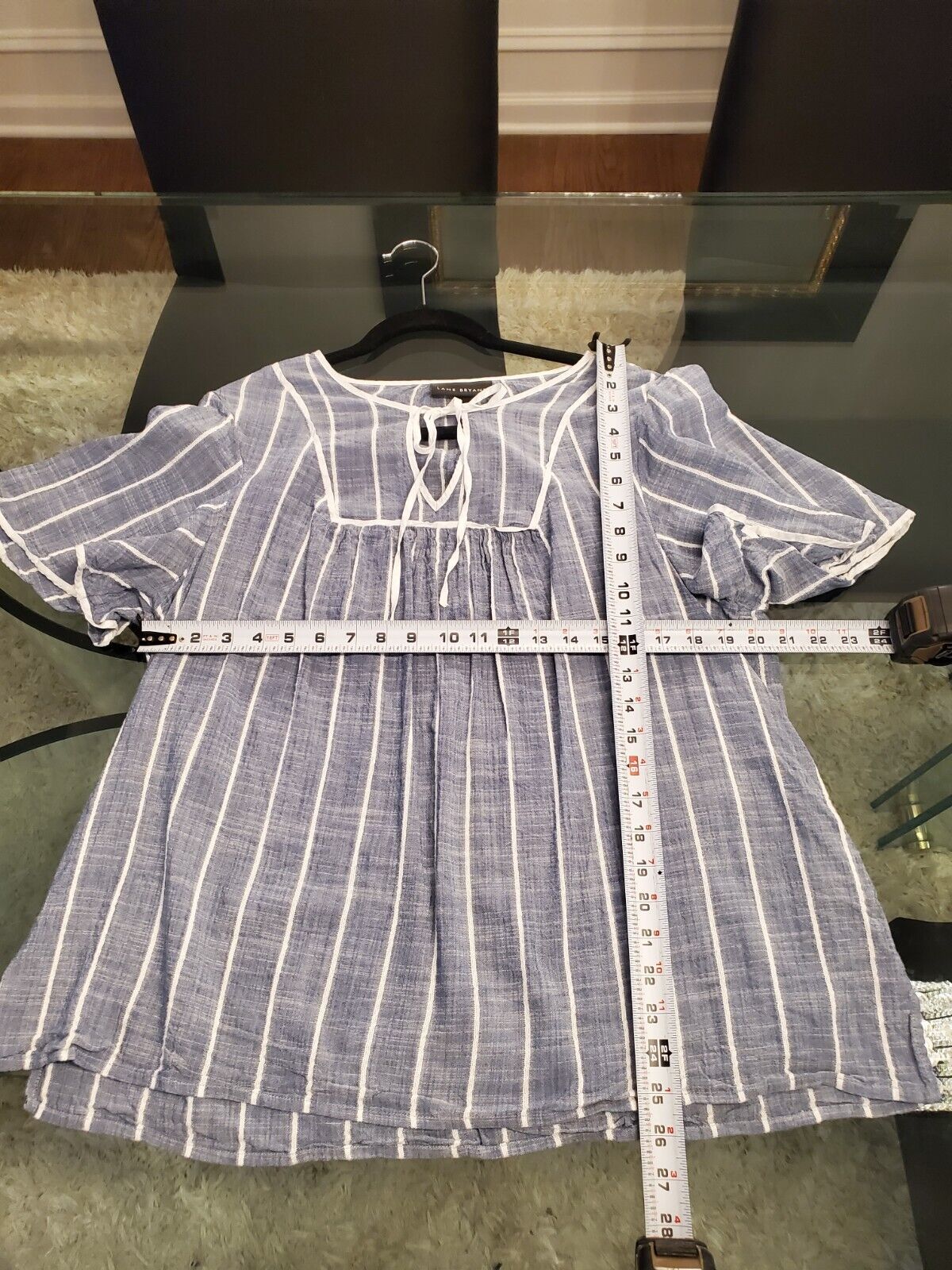 Lane Bryant Women Gray Striped V Neck Short Sleeve Drawstring Top Blouse Size 18.