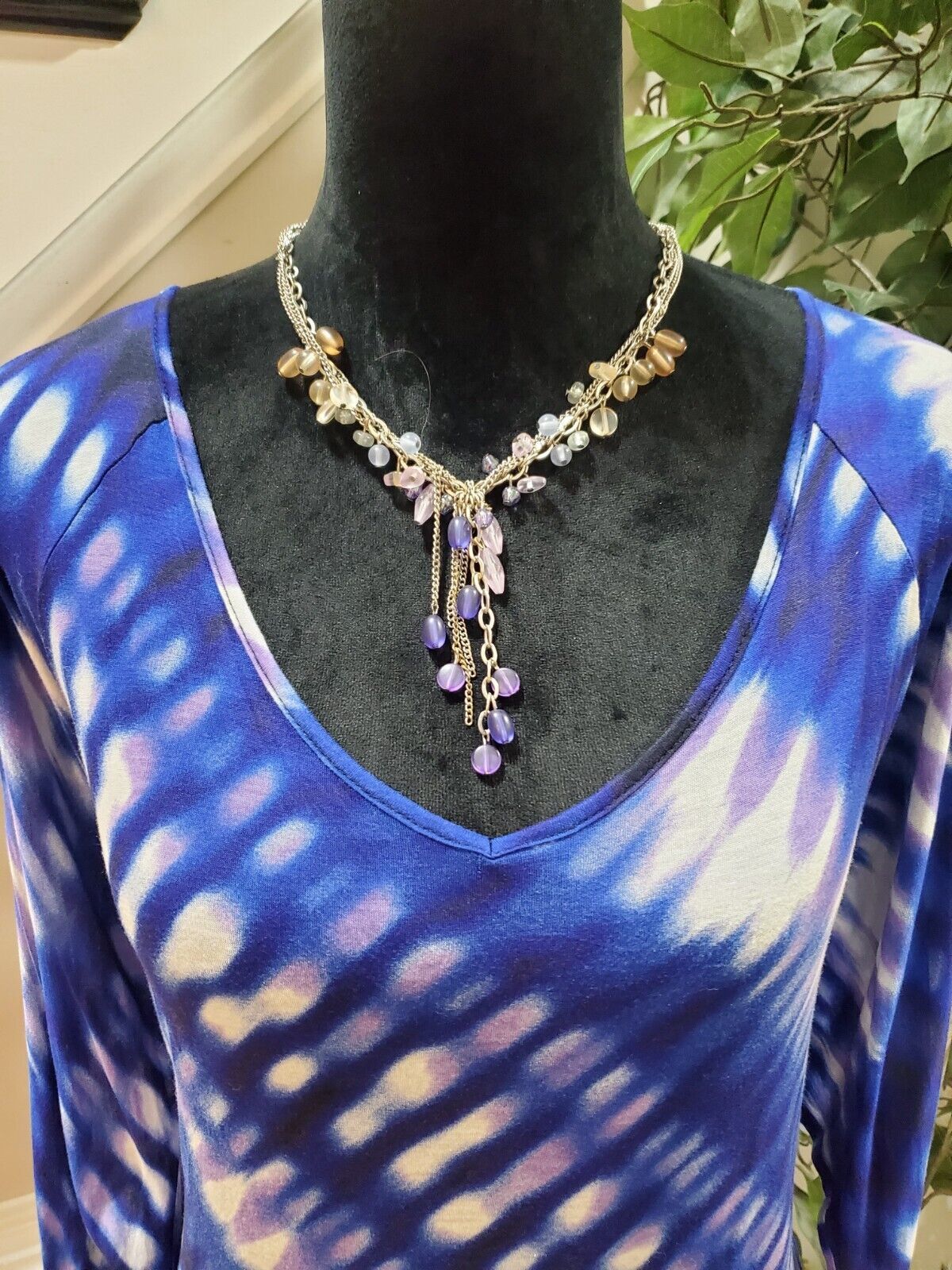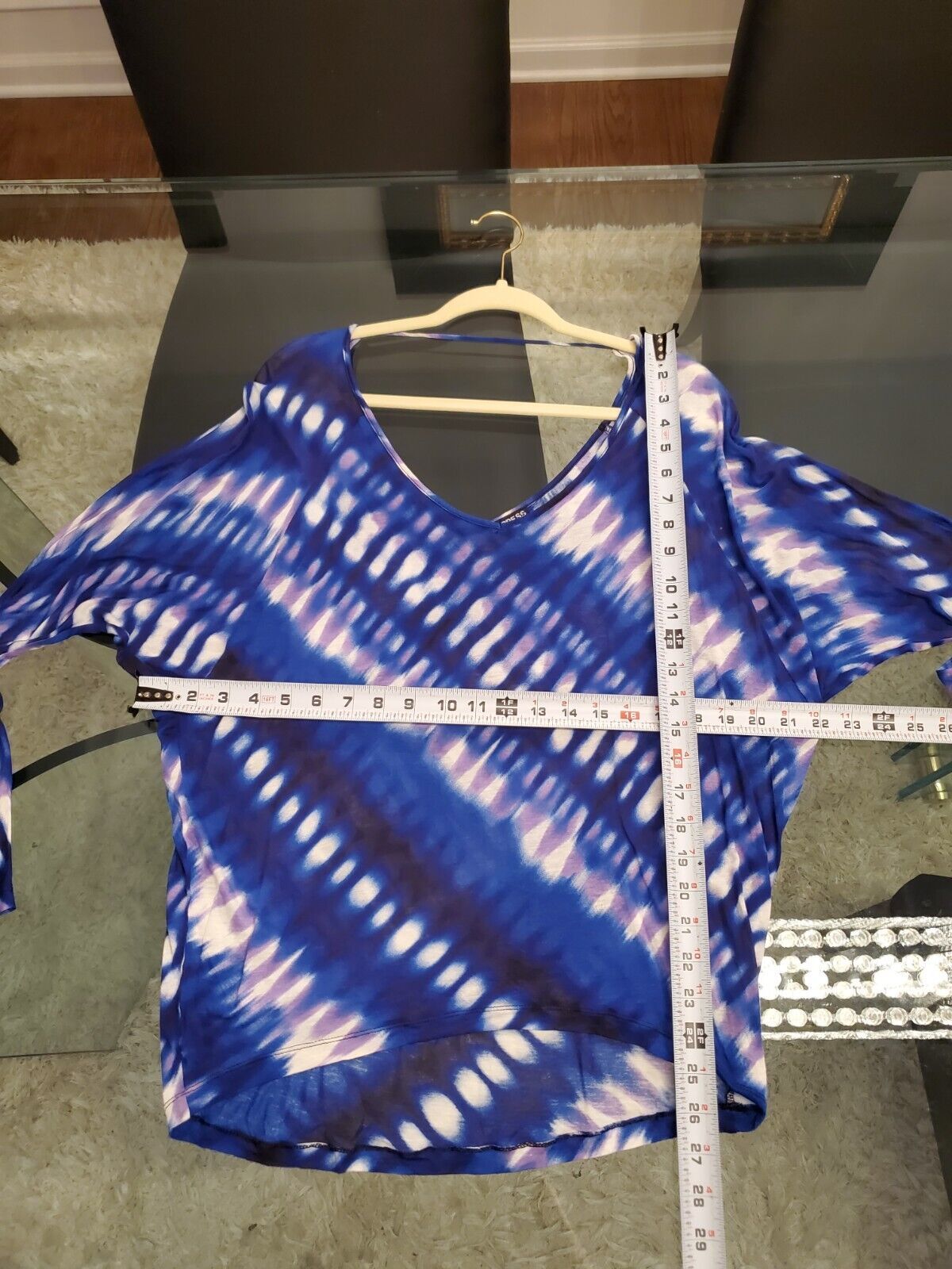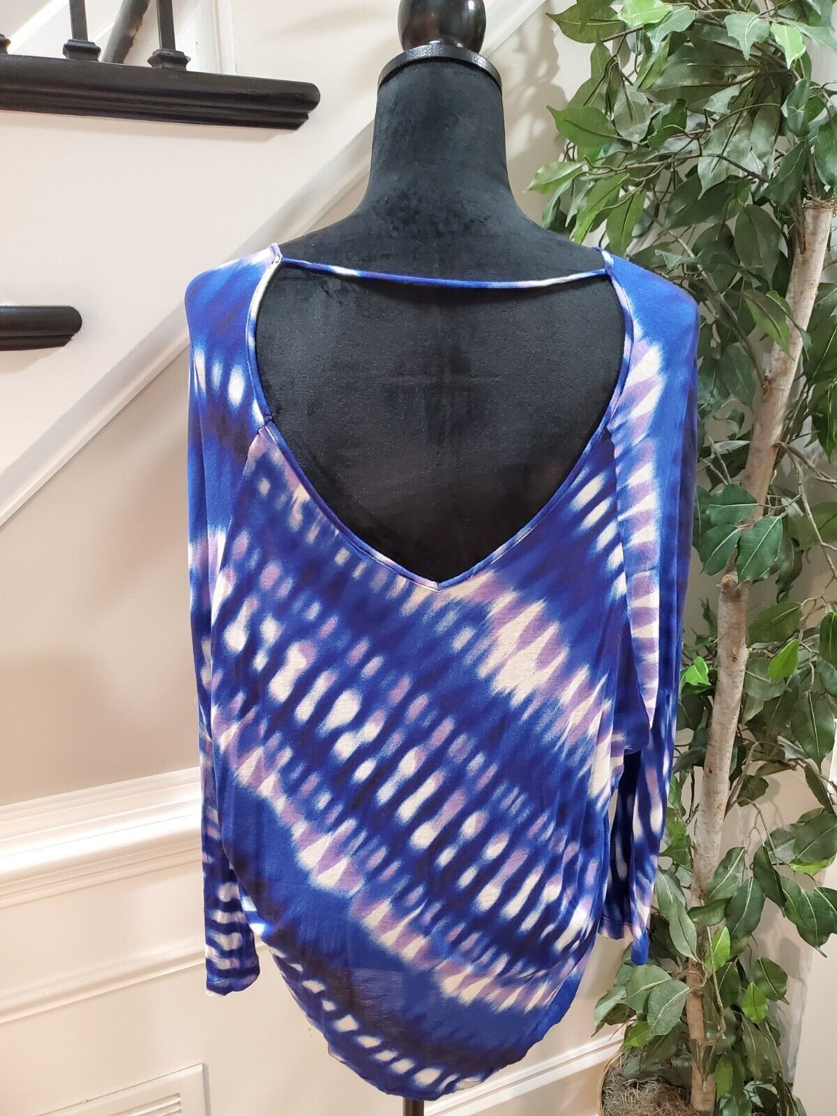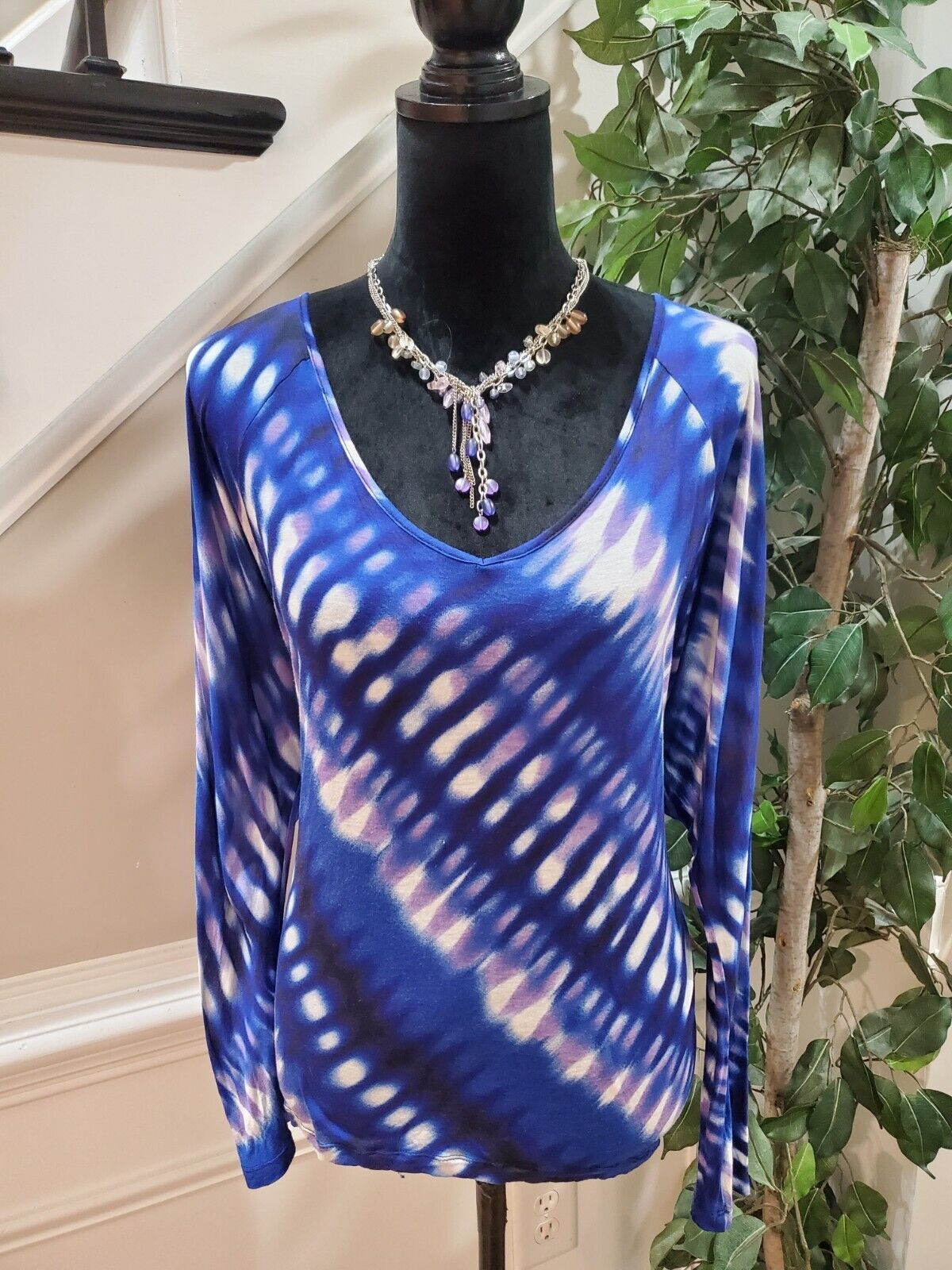 Express Women's Multi Tie Dye 100% Modal V Neck Long Sleeve Top Blouse Medium.