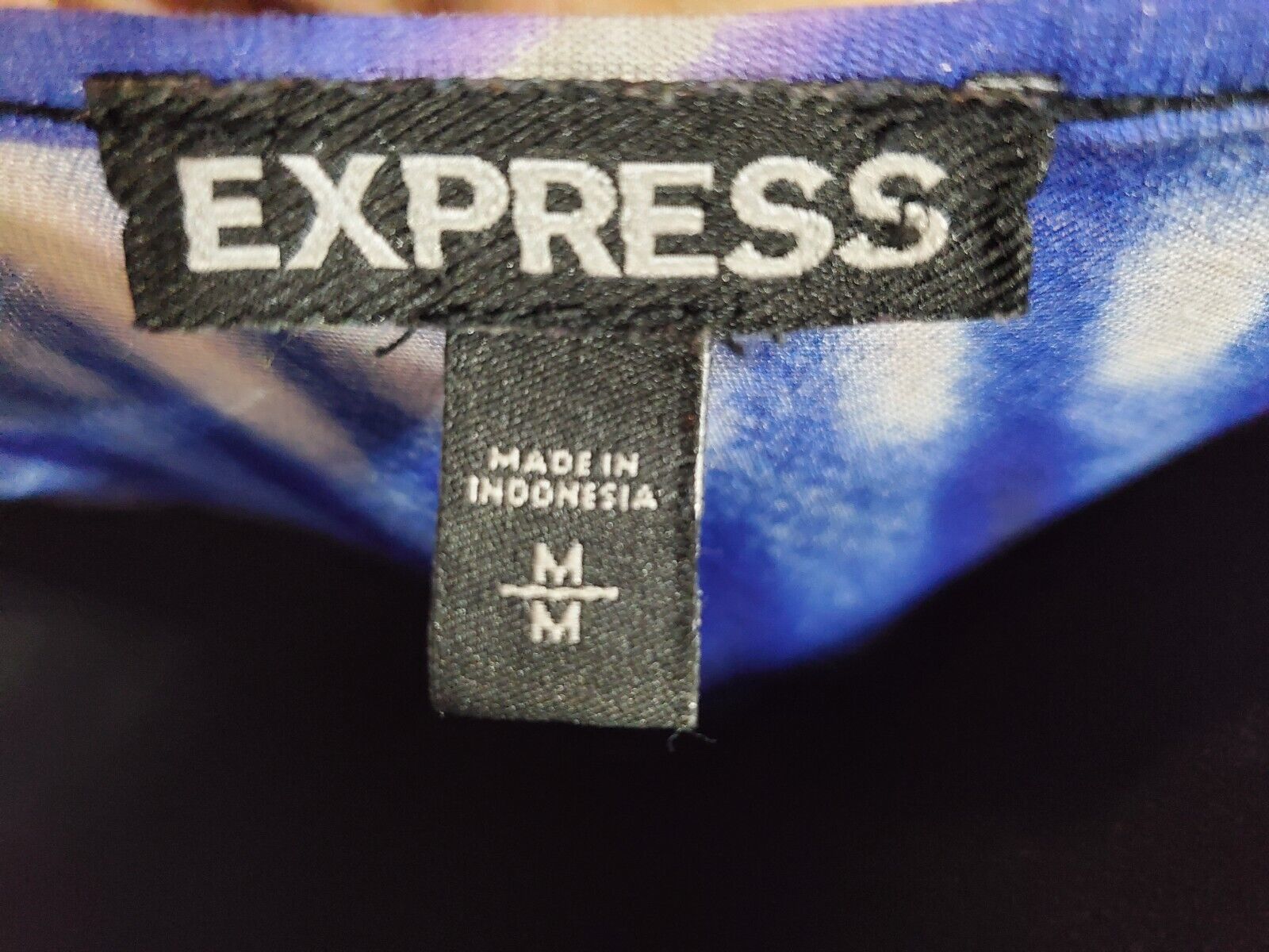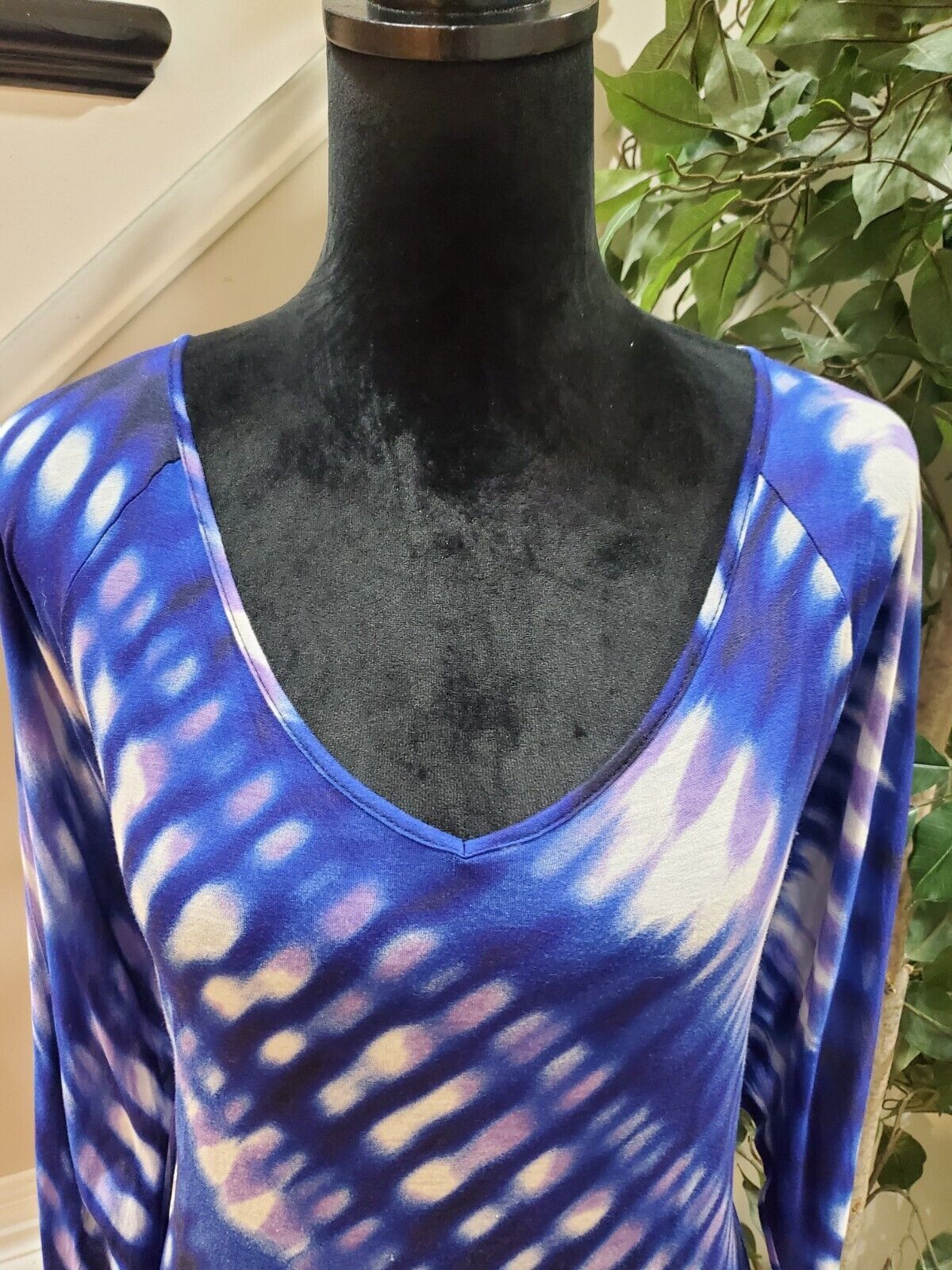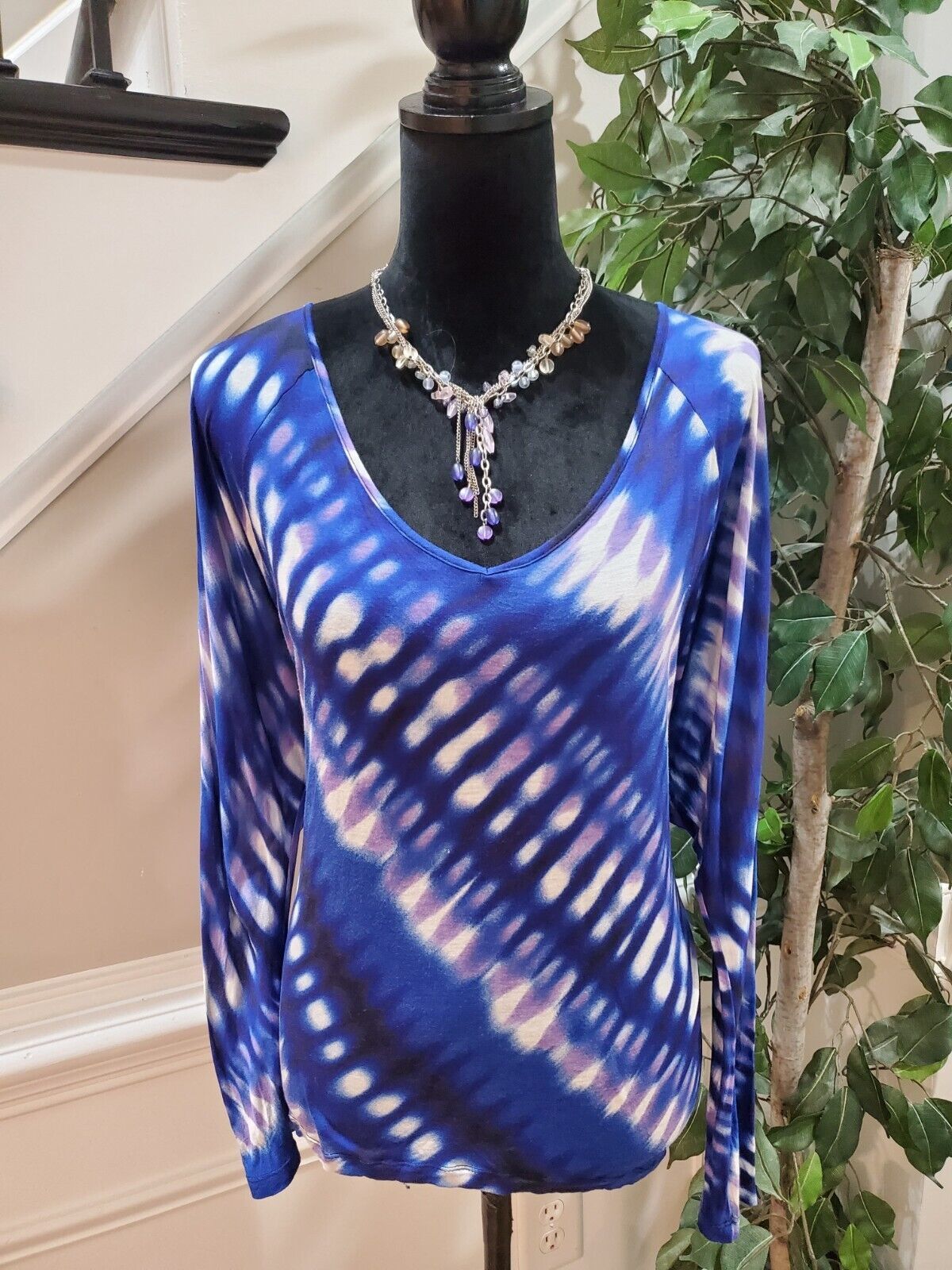 Express Women's Blue Tie Dye 100% Modal VNeck Long Sleeve Top Blouse Size Medium