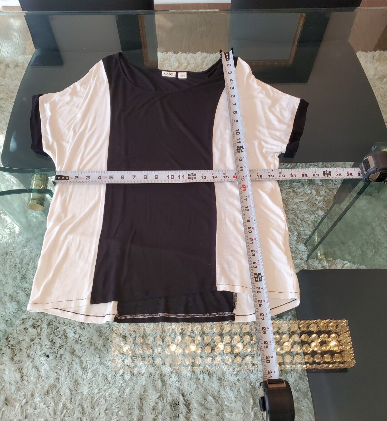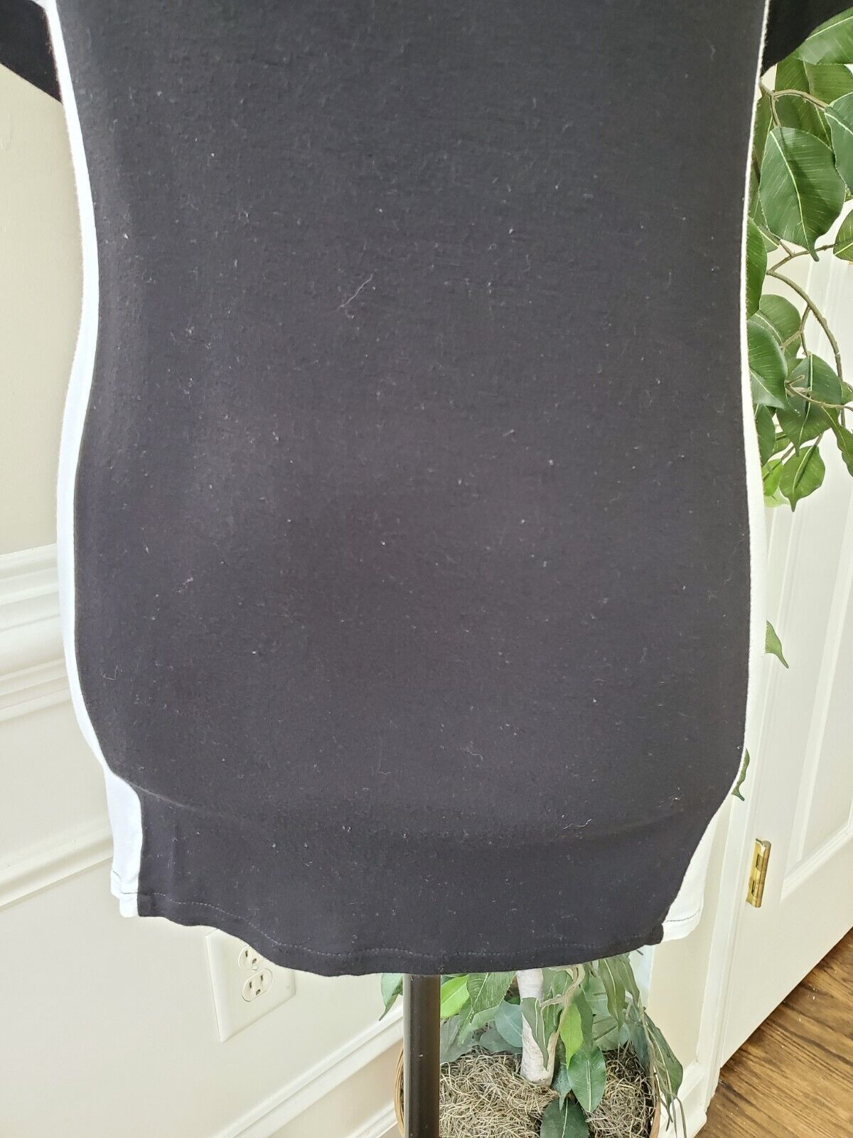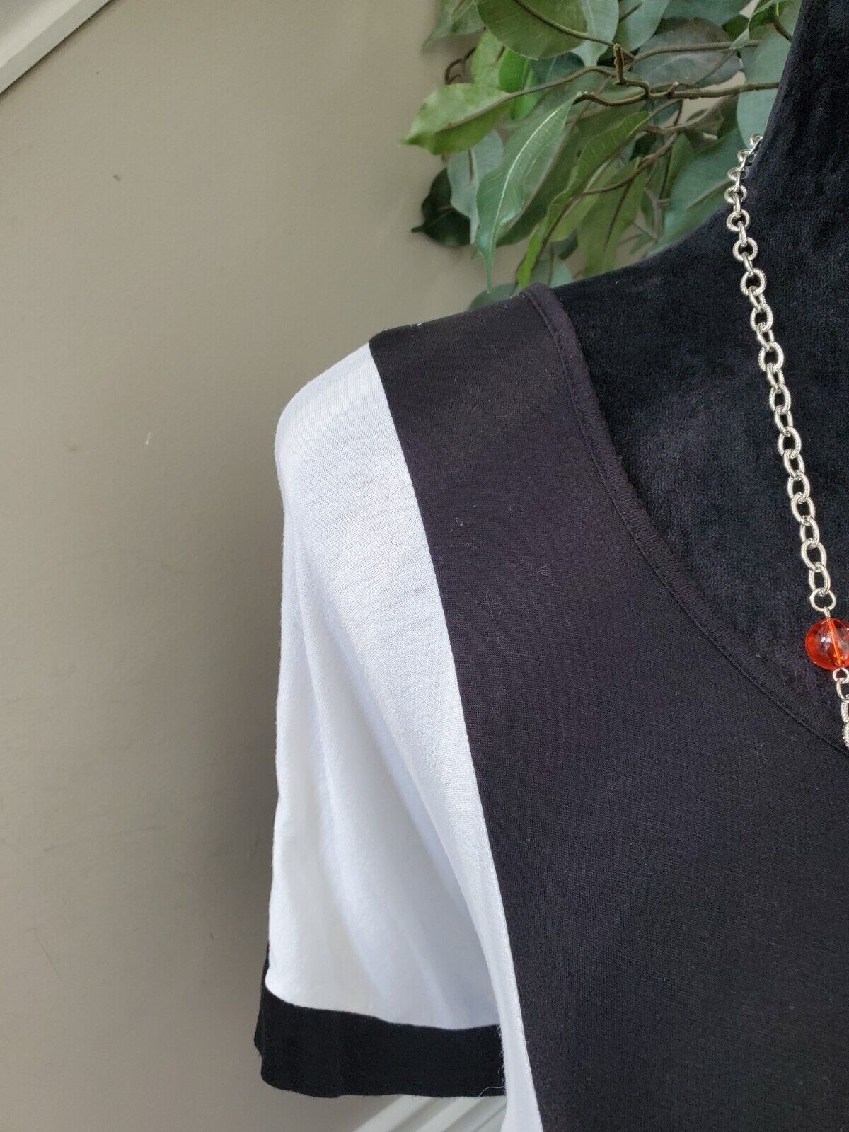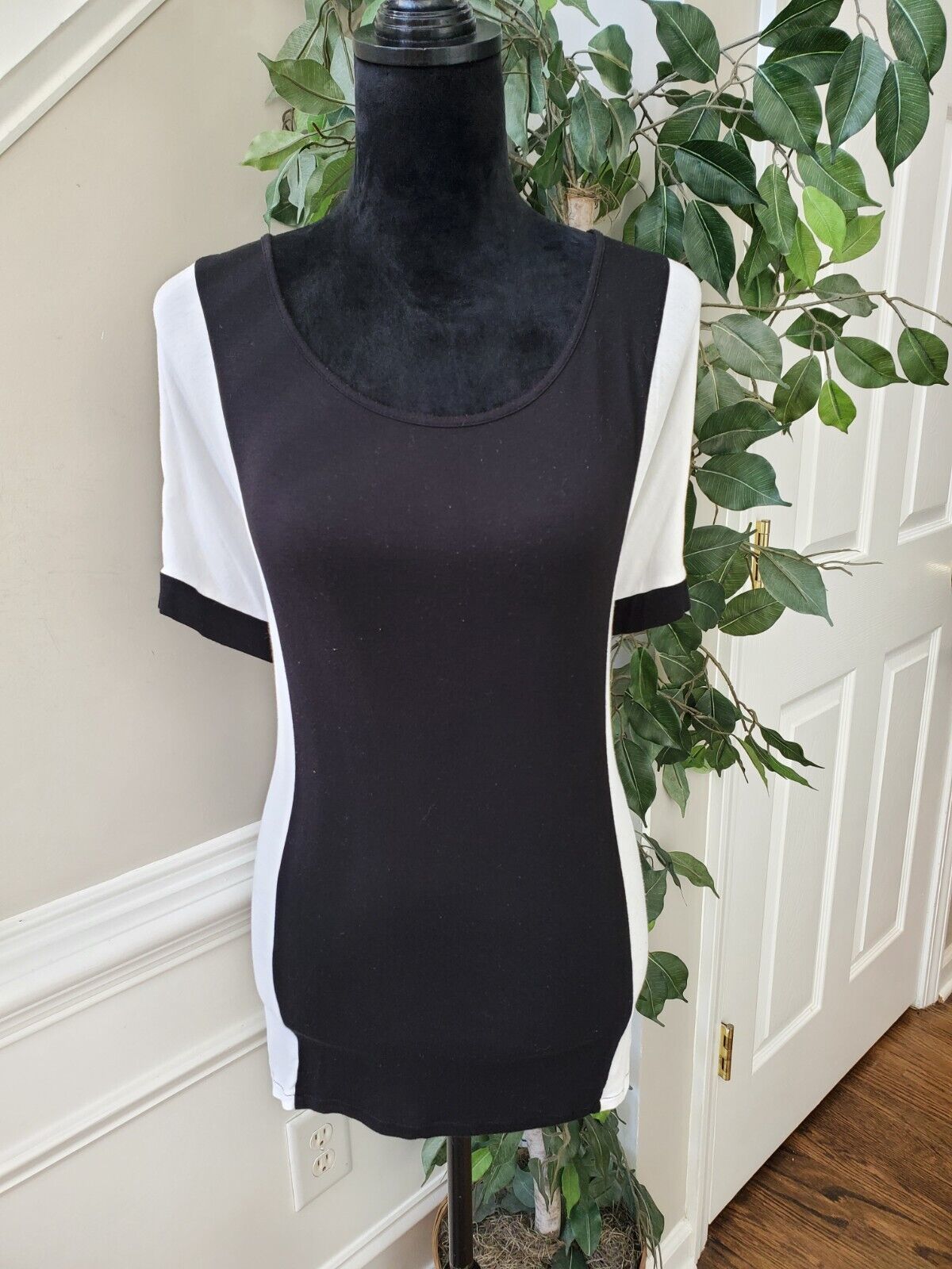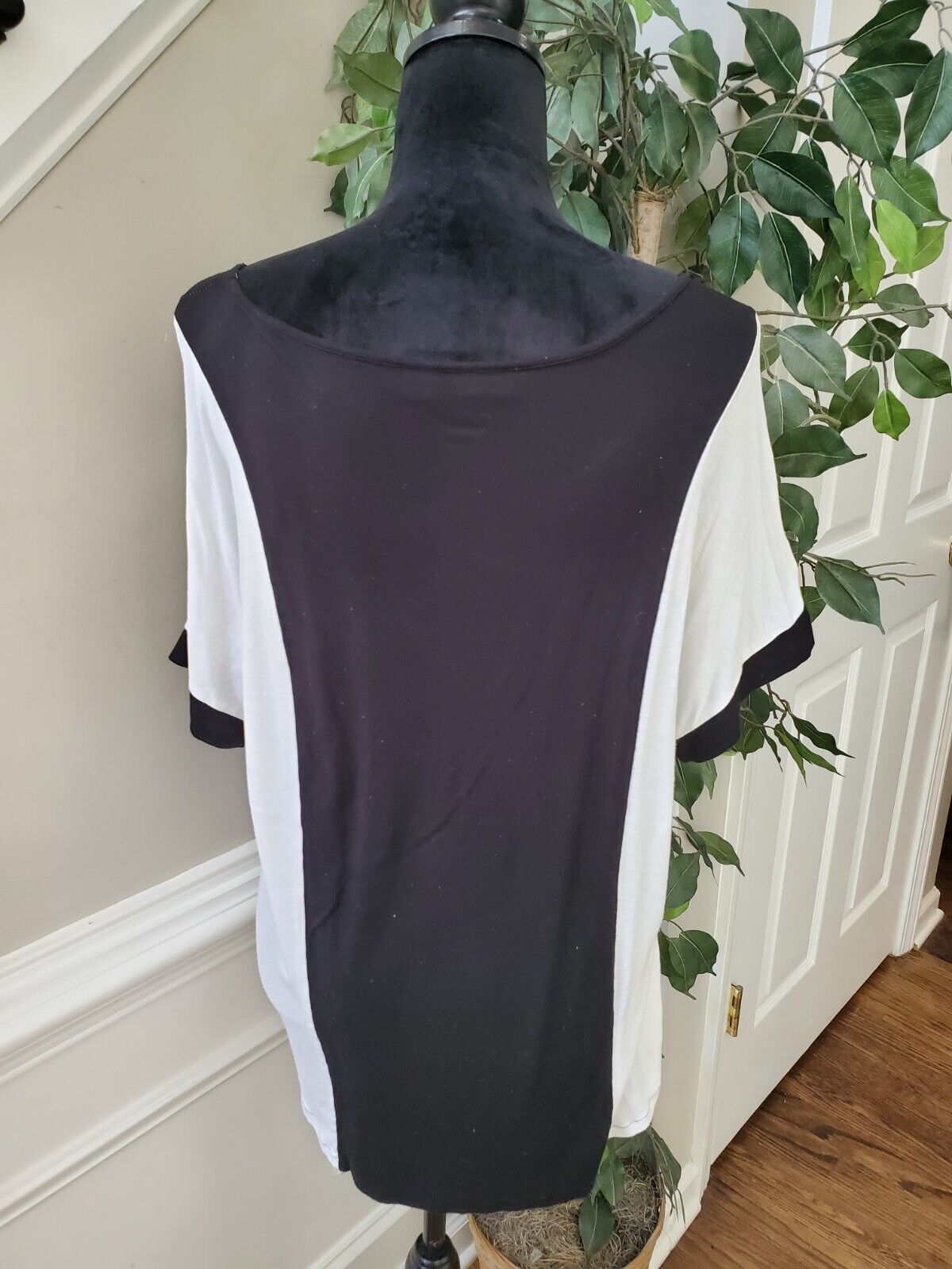 Cato Womens Black White Rayon Short Sleeve Round Neck Top Blouse Size Large.