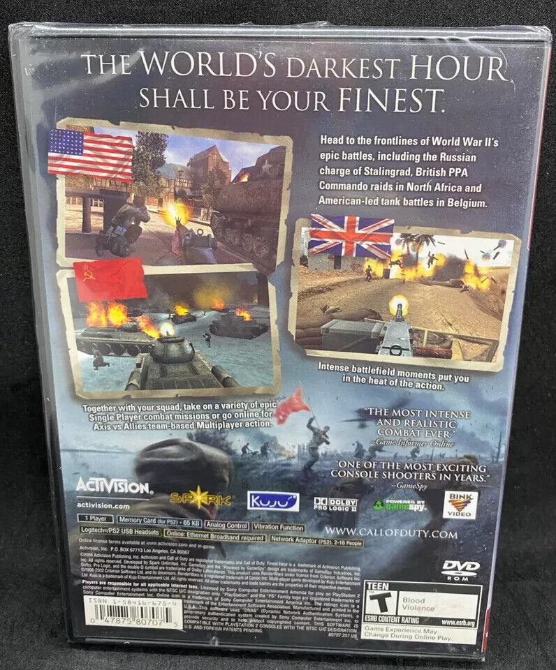 Call of Duty: Finest Hour Greatest Hits New Sealed Ntsc USA PLAYSTATION 2 PS2