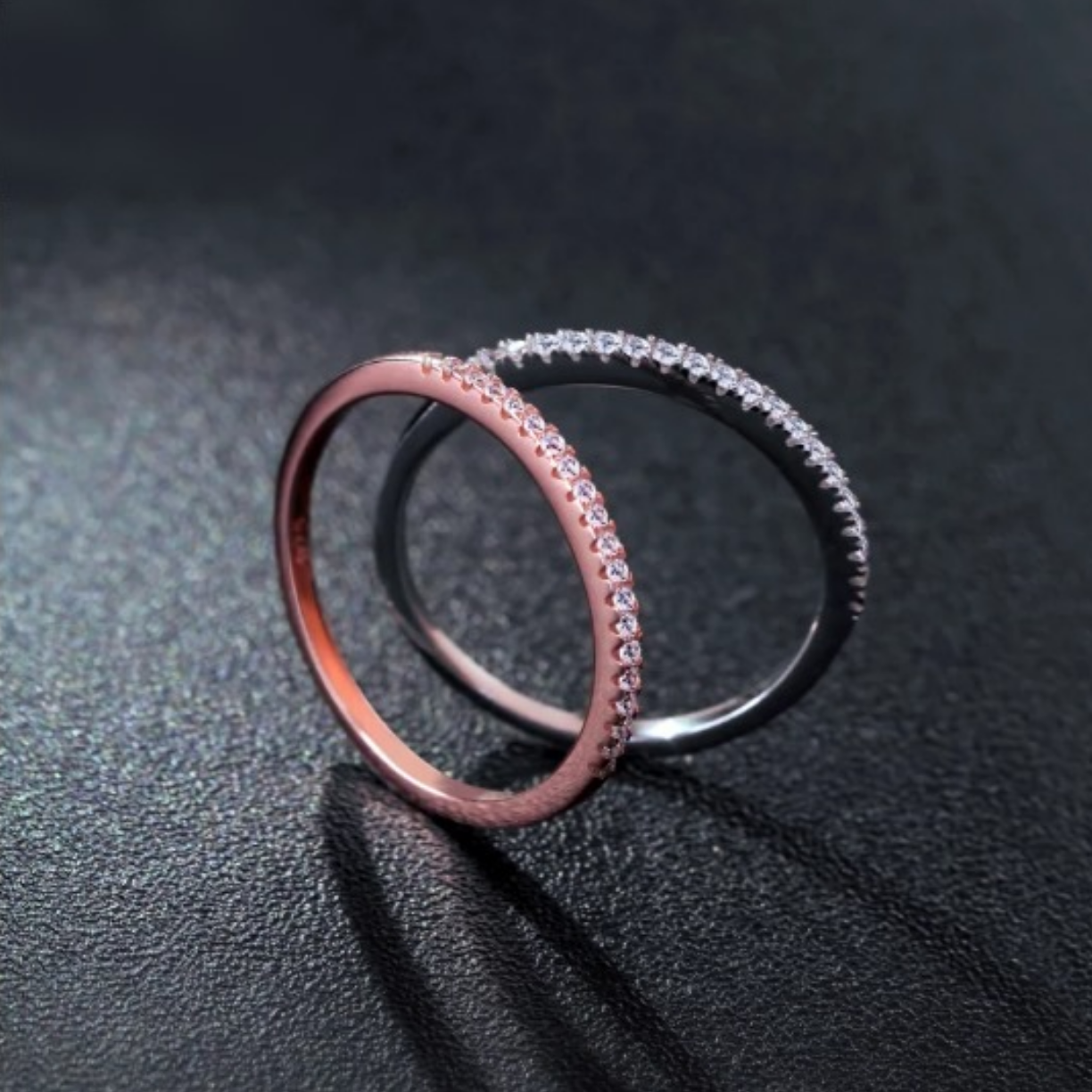 925 Sterling Silver A+ Semi-Pave Zircon Ring (Silver, Rose Gold)