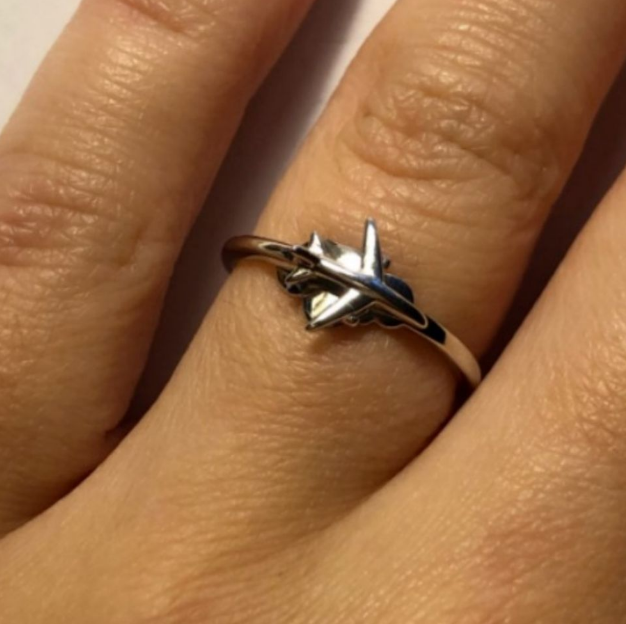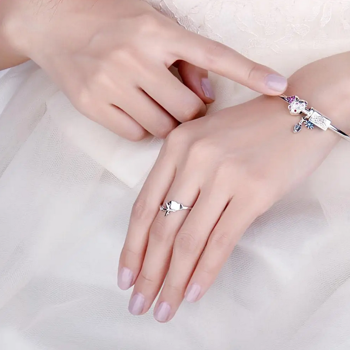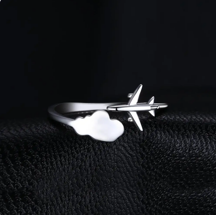 Creative 925 Sterling Silver Adjustable Airplane Ring (Size 6.5 - 8)