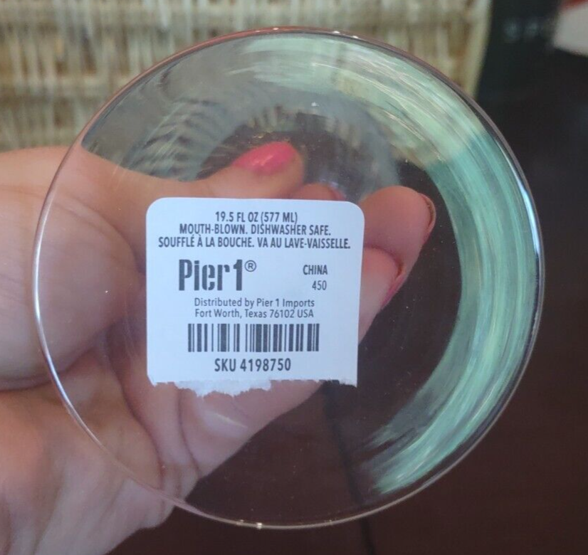 Pier 1 Tall 19.5oz Wine Glass-Mouth Blown-Dishwasher Safe-Brand New-SHIP 24 HOUR