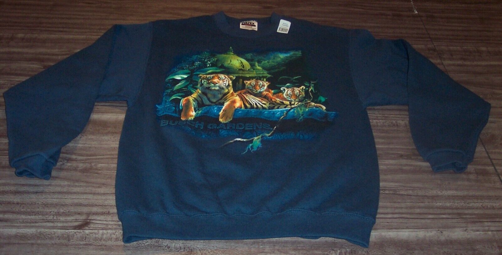 This is a Vintage BUSCH GARDENS TIGER Tigers Sweatshirt. It is a size SMALL and is NEW. It is 20 inches from armpit to armpit and 27 inches in length. Combine auctions to save on shipping. ELAG