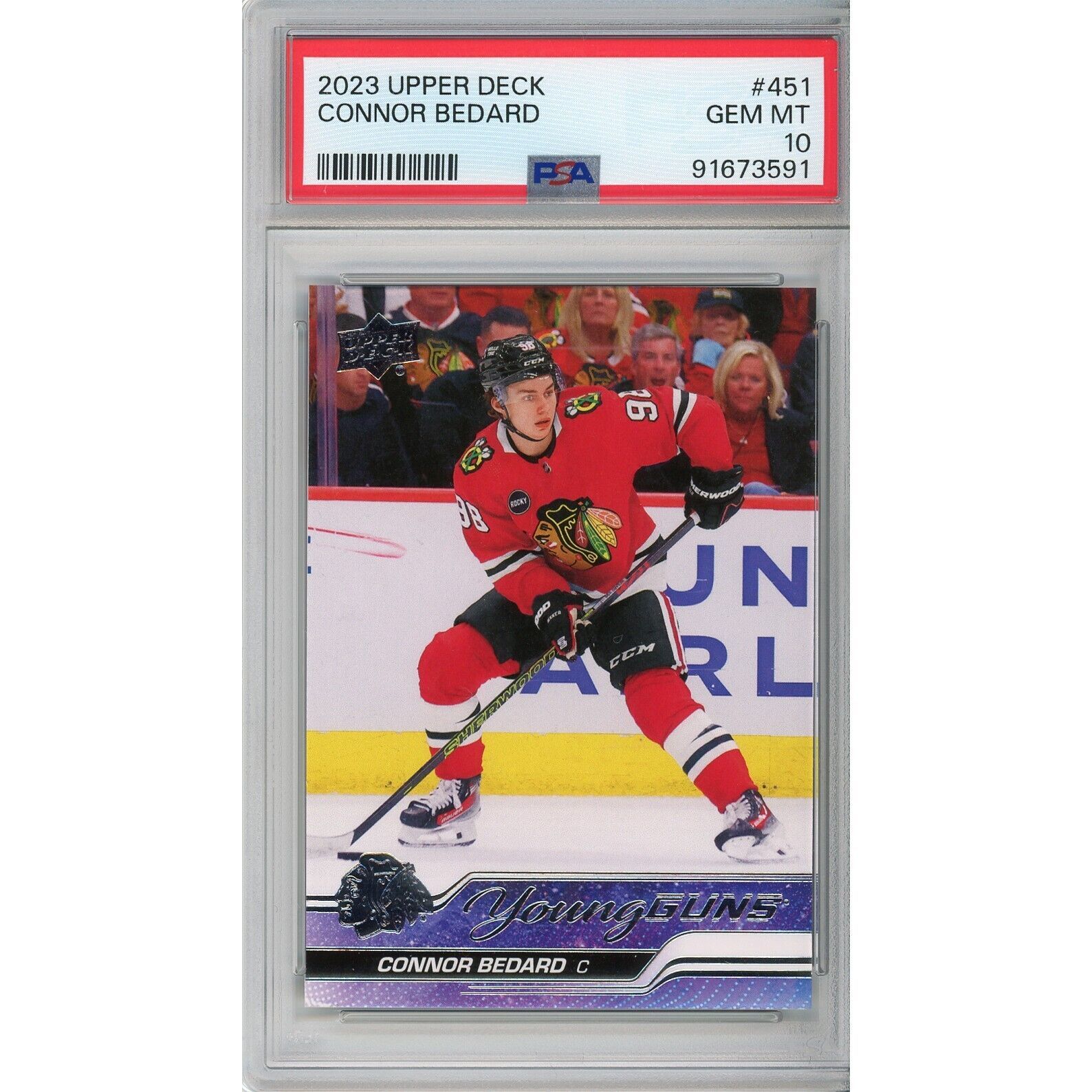 2023 Upper Deck Connor Bedard Young Guns Rookie Card #451 RC PSA 10 UD Chicago