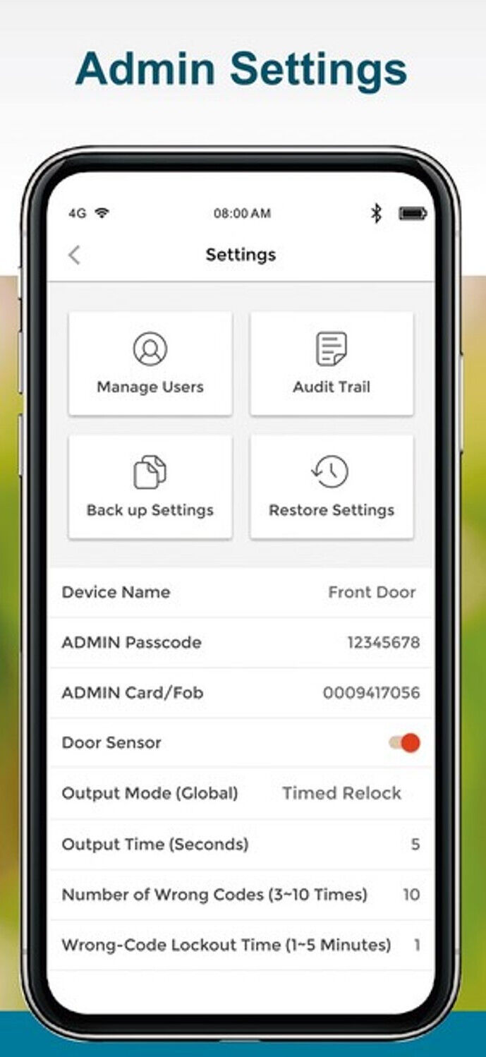 Rethinking Access Control - Streamlined, fully app-based setup using integrated Bluetooth wireless technology. No codes to remember, intuitive app design for easy, visual programming. Provides convenience and security to the user and administrator. All data is secured on the device without the risks inherent with an internet connection.