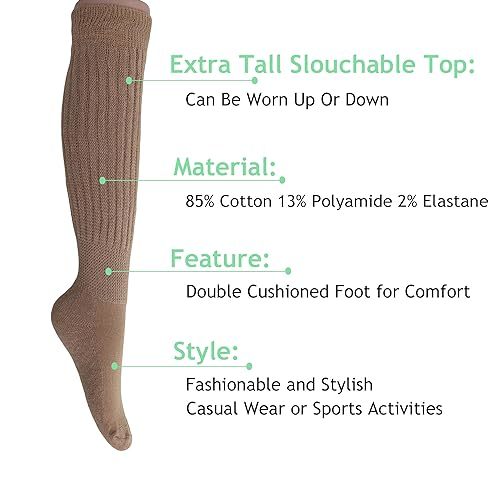 Product description: Step into a world of nostalgic comfort with our Cotton Slouch Boot Socks. AWS/American Made Slouch Socks Crafted with a blend of Cotton premium material, these socks offer a cozy and stylish addition to your wardrobe. Inspired by the iconic fashion of the '80s and '90s, these AWS/American Made slouch socks feature a classic ribbed design that adds texture and charm to any outfit. Whether you're lounging at home or hitting the streets, these Slouch Socks are the perfect accessory to elevate your look with a touch of retro flair. Designed for all-day wear, our slouch socks provide a comfortable fit that stays in place without feeling restrictive. The soft and breathable fabric ensures your feet stay cozy and dry, while the slouchy silhouette adds a relaxed vibe to your ensemble. Available in a variety of colors to suit your style, these socks are a must-have for any fashion-forward woman. Treat yourself to the timeless appeal of our Retro Ribbed Slouch Socks and step out in confidence wherever you go. Slouch Socks for Women; Retro-inspired design, Premium blend for comfort and durability, soft texture for added style.