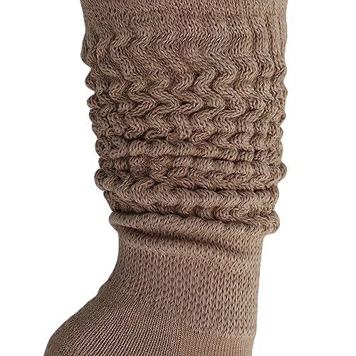AWS/American Made Cotton Slouch Boot Socks Shoe Size 5 to 10 (Beige 3 Pair)