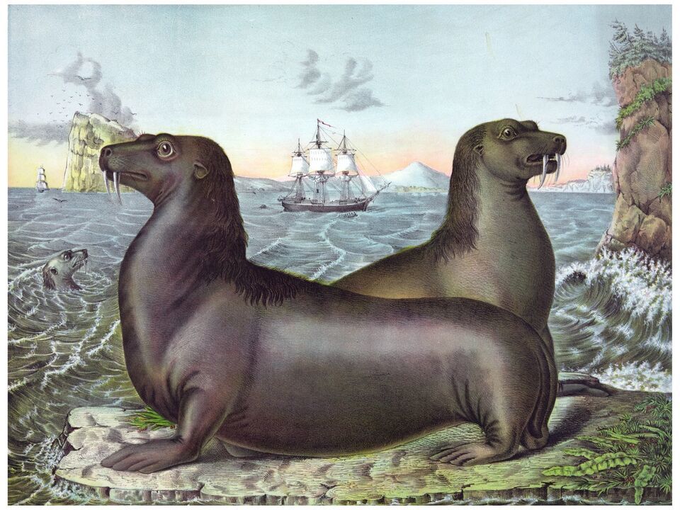 8053.Walrush on ice plank.boat.ice berg in and similar items