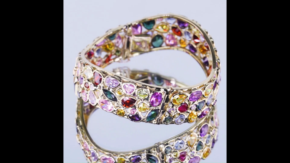 Authenticity Guarantee Multi-Colored Gemstone 18k Yellow Gold Bangle Bracelet