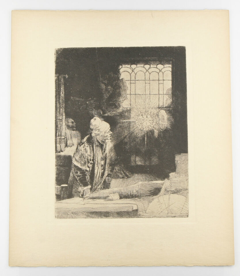 "Faust in His Study" by Rembrandt, Restrike Etching