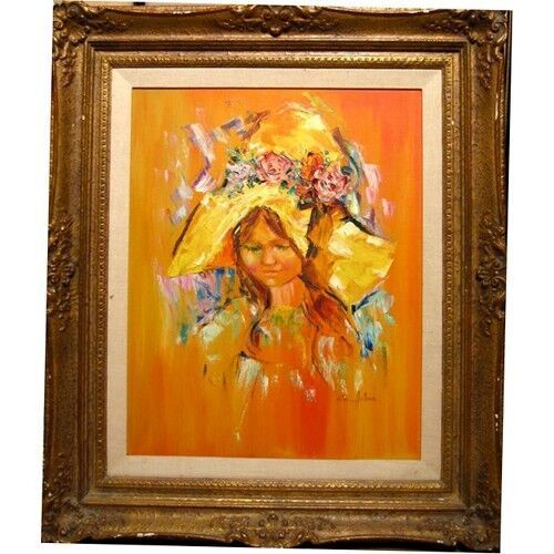Untitled (Girl in Orange) by Rita Asfour, Oil on Canvas, 34.5" x 29.5", Signed