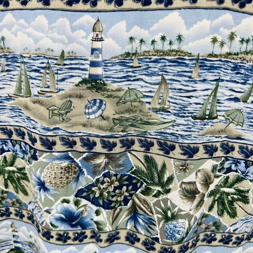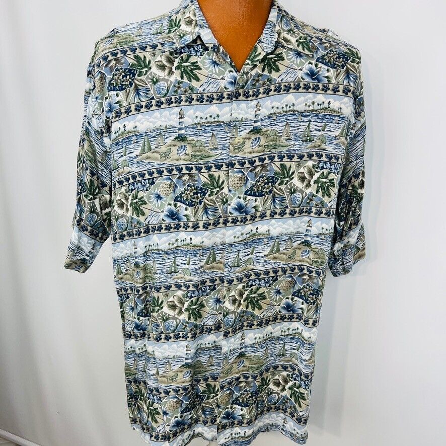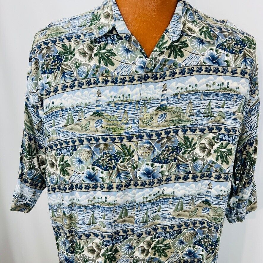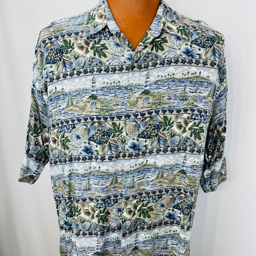 Hawaiian Aloha L Shirt Beach Chair Island Lighthouse Sail Boat Tropical