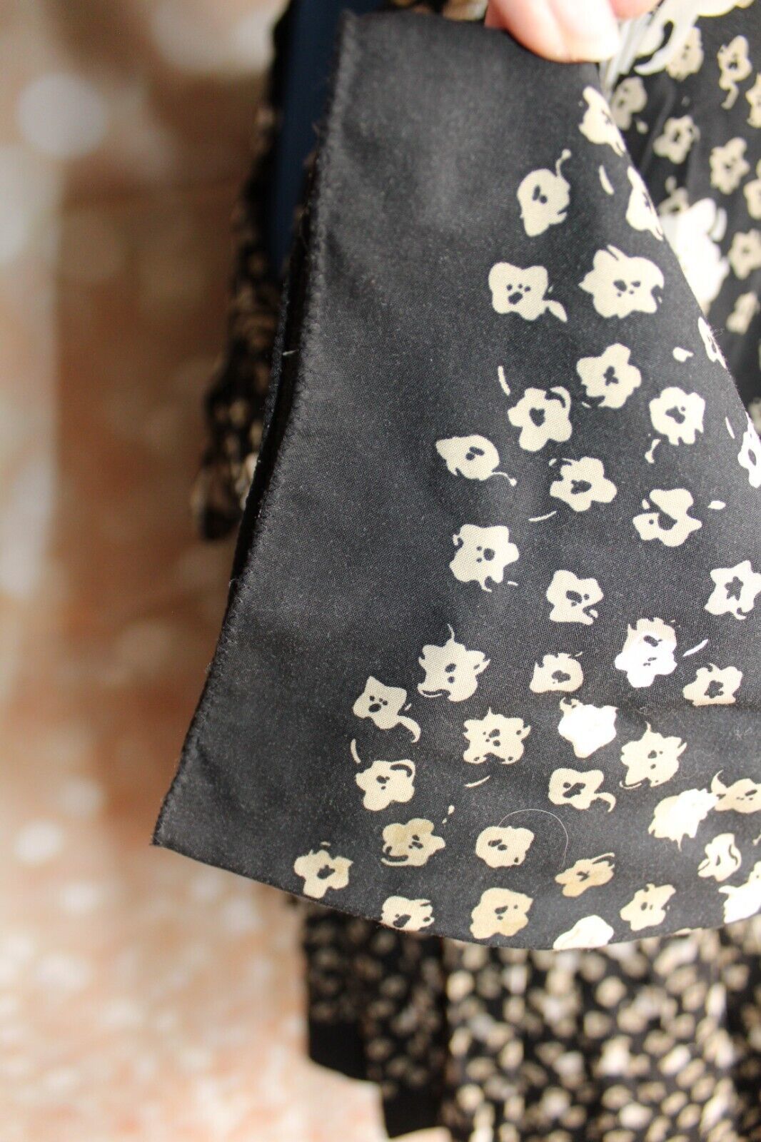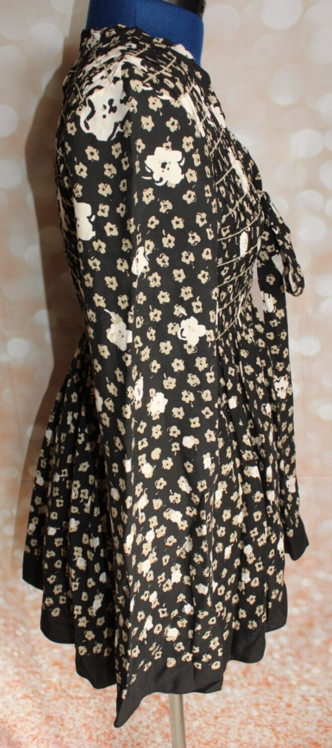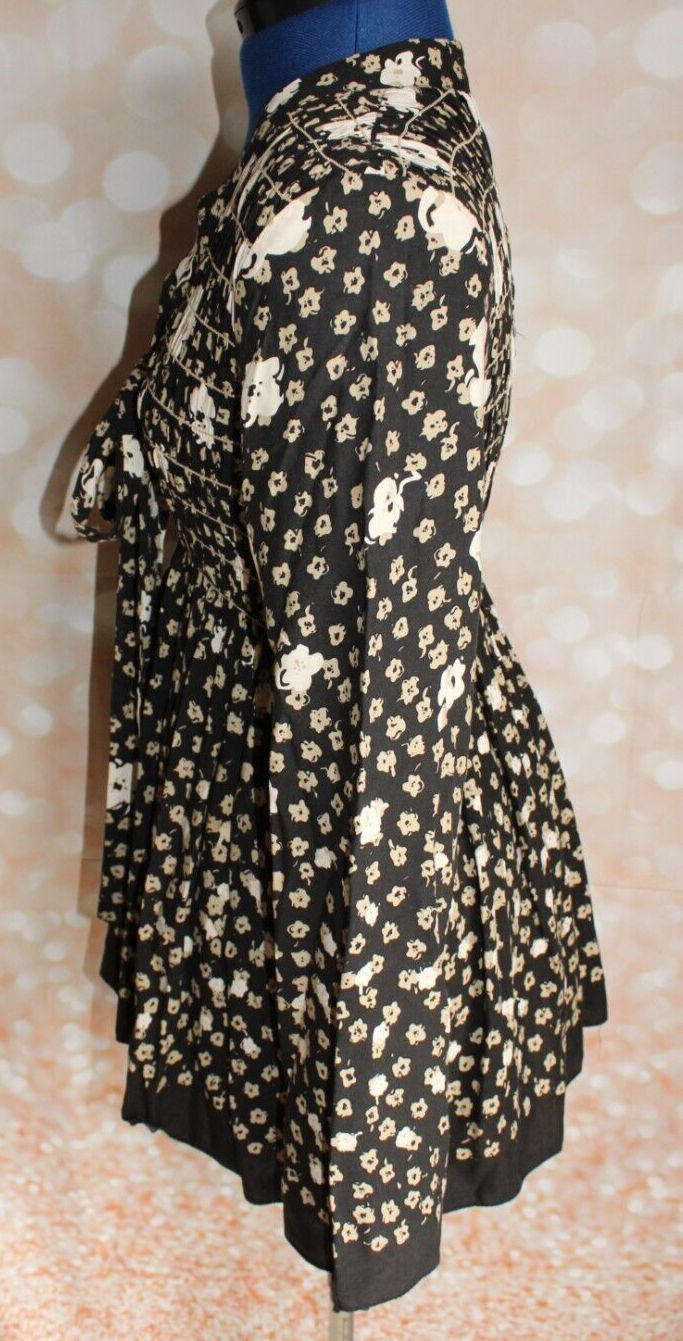 Studio M Womens Blouse Black Tan Floral Long Sleeve Flare V Neck Shirred ~Small~