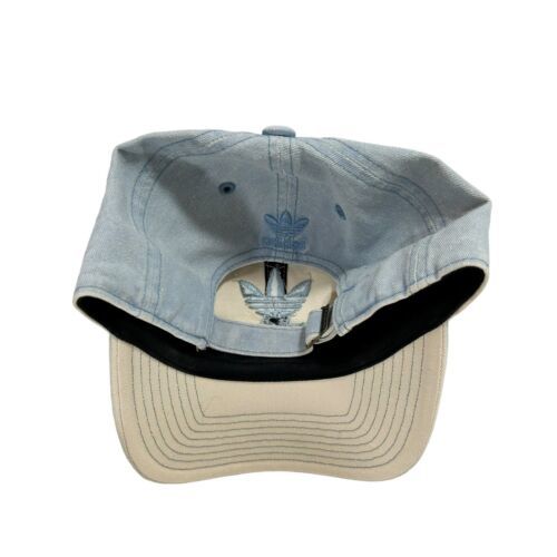 Whether you're a dad or a young man, this cap is a great addition to your wardrobe. It's suitable for all seasons, including winter, summer, fall, and spring. Made of high-quality cotton material, this cap is durable and long-lasting. Get your hands on this stylish cap today and add a touch of Adidas to your outfit! This is a rare one because the Adidas logo is light blue and so is the hat. Most of these that you will find are a darker logo. This is much nicer in my opinion. There is a small spot/marl on the bill, I think this would easily come out in the washing machine or if you hand wash it with mild soap water. I will leave this up to the buyer.