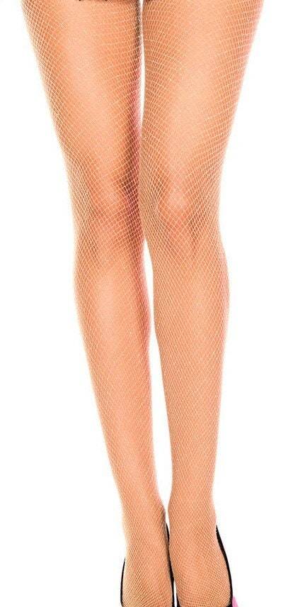 Natural with SILVER Lurex FISHNET Tights Sparkly Tan Beige Net Hosiery PANTYHOSE