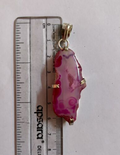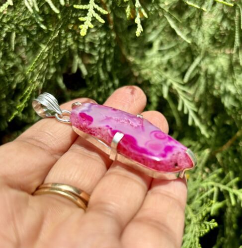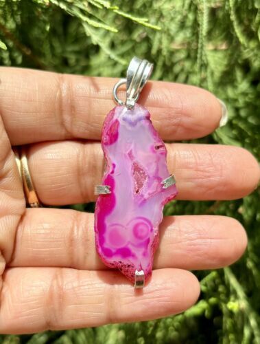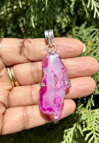 925 Sterling Silver Plated, PINK Druzy Geode Agate Stone Pendant, Healing 1