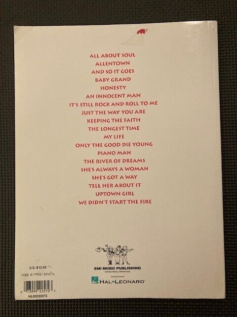 THE BEST OF BILLY JOEL songbook 19 GREATEST HITS "Big-Note" Piano Hal Leonard Overall very good. Light cover wear tag remnants on back. Some writing on a few of the pages per final images.