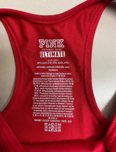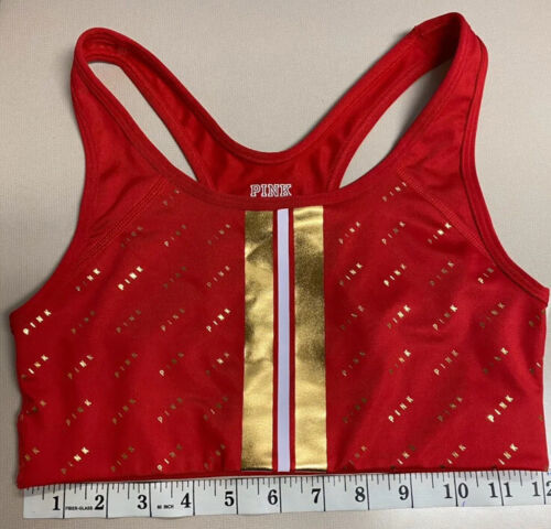 Victoria's Secret Pink - Red Gold Logo Racerback Sports Bra Size S. Condition is New with tags. Shipped with USPS Ground Advantage.