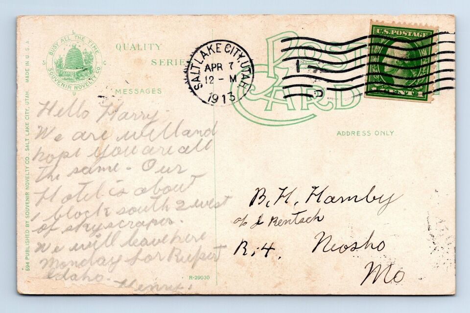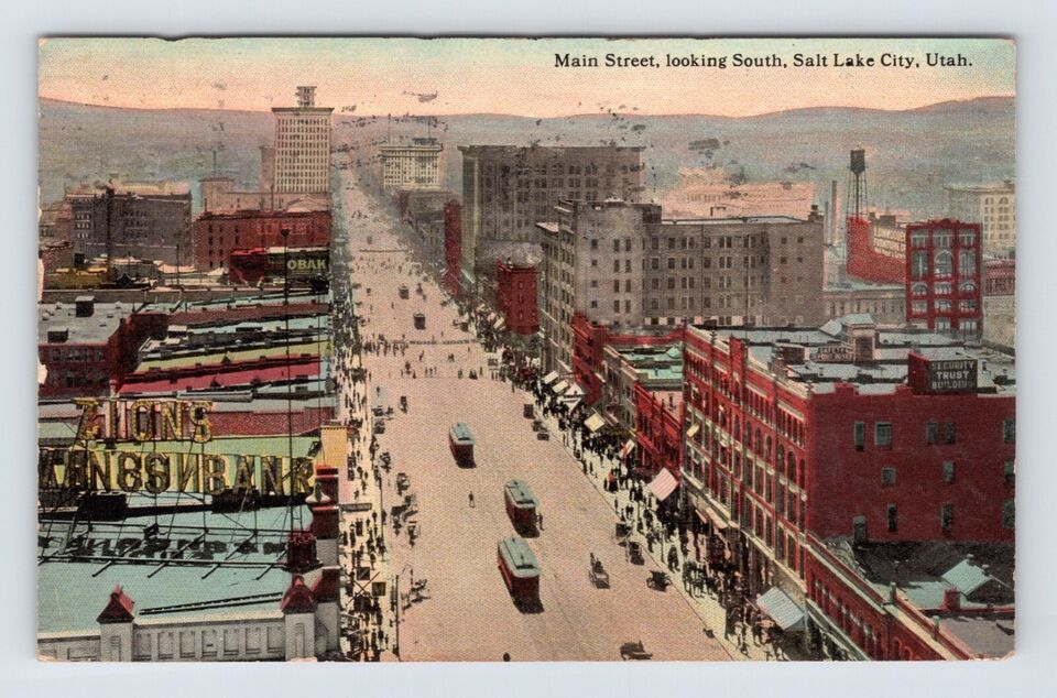 Main Street View Looking North Salt Lake City Utah UT 1913 DB Postcard J17