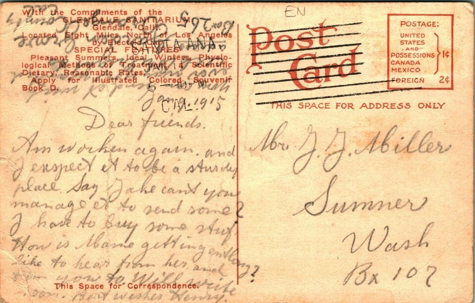 Glendale Sanitarium California CA Unused UNP Multiview 1915 DB Postcard D4