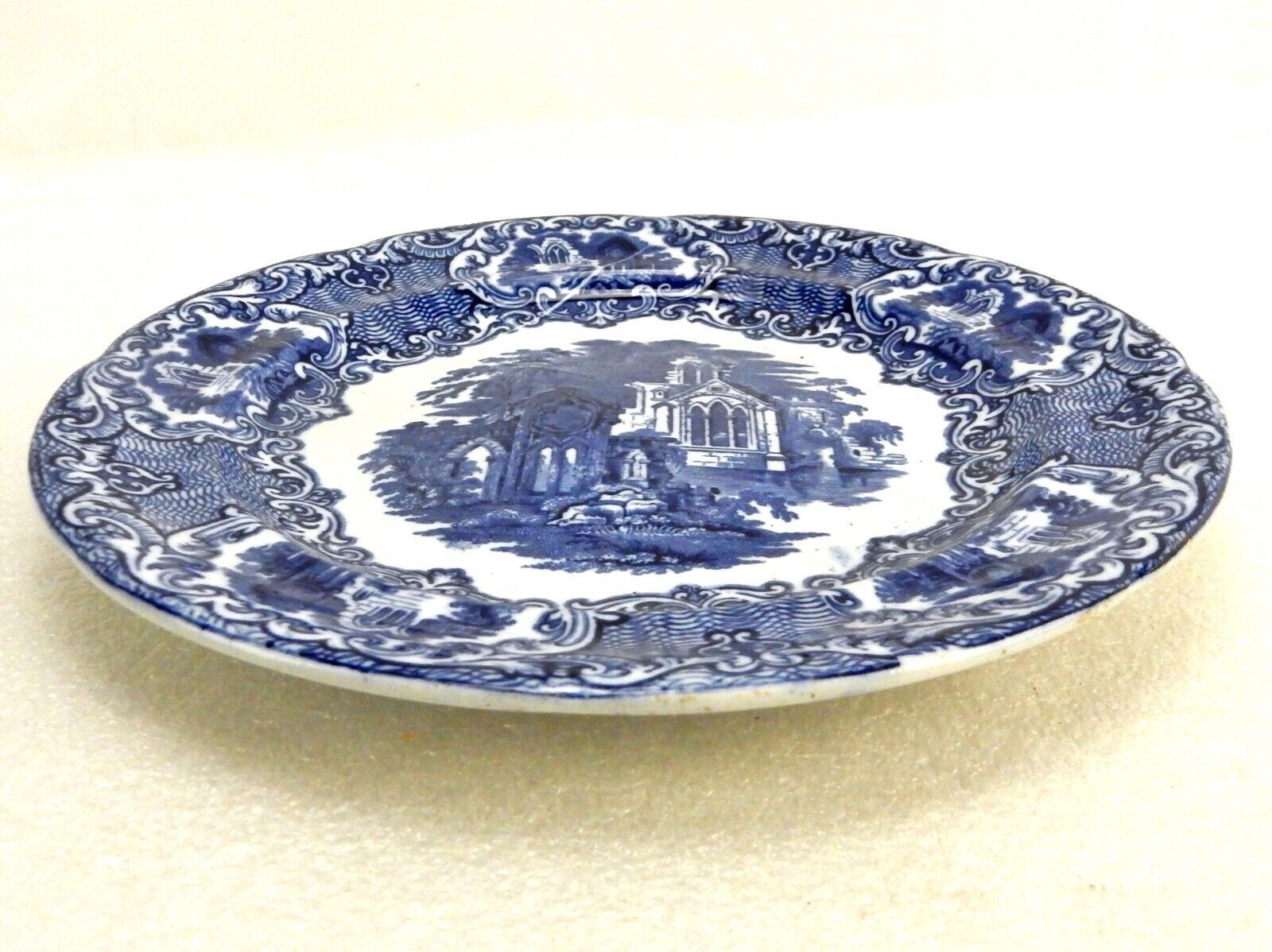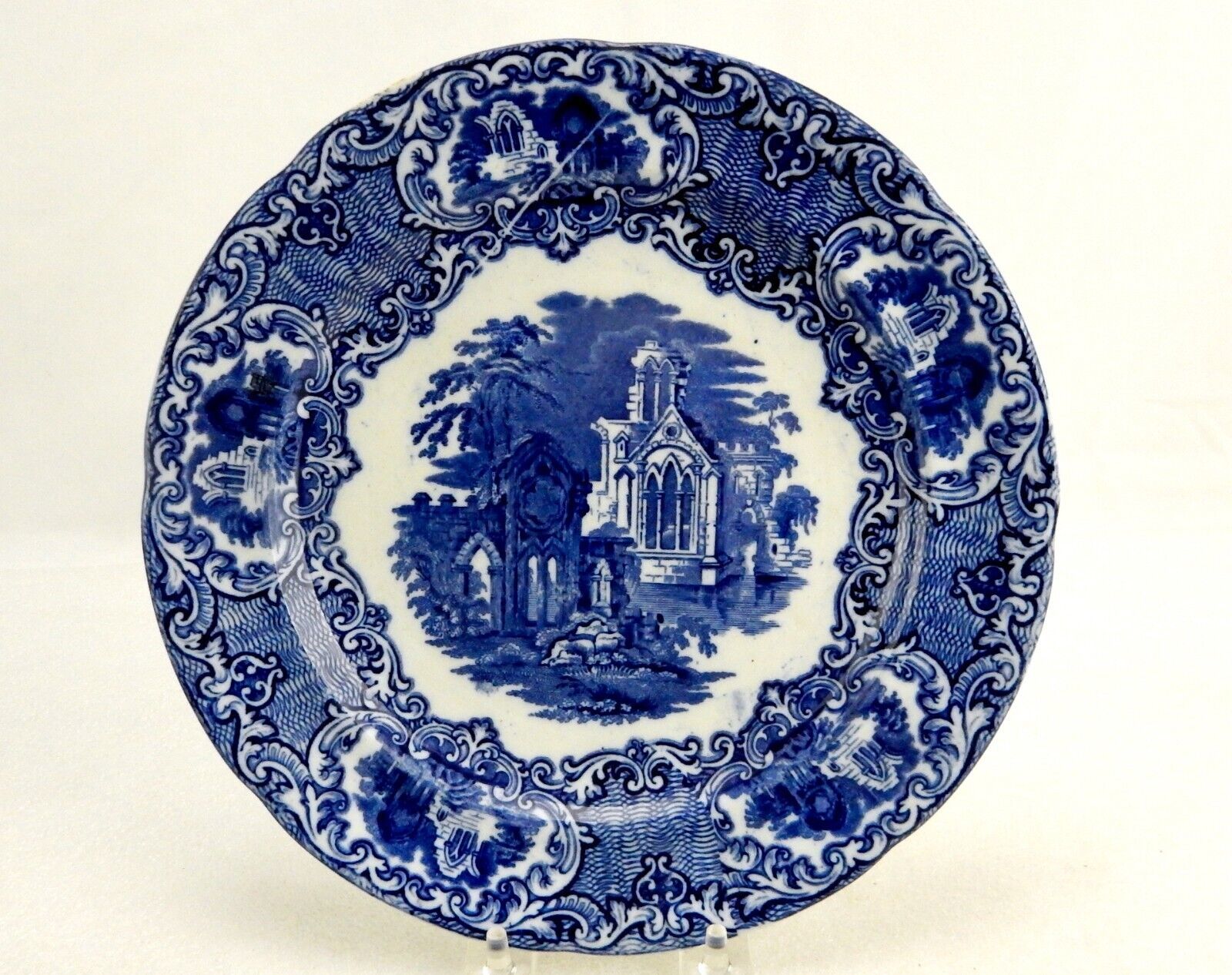 Flow Blue Plate, George Jones Sons, Abbey 1790, Church Scene, Vintage/Antique