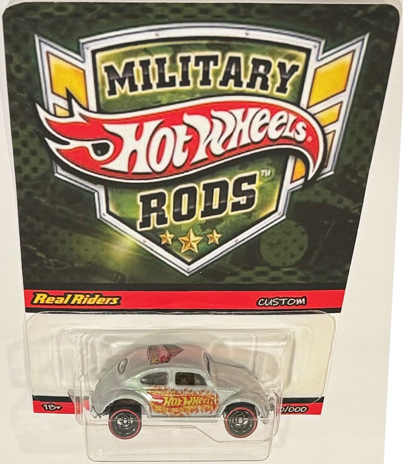 Volkswagen VW Beetle CUSTOM Hot Wheels Military Rods Series w/ RR Real Riders Rubber Tires.
